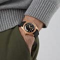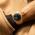 Divers Sixty-Five Cotton Candy Sepia - с бронзовым корпусом, черным циферблатом, стрелками и часовыми метками с золотой окантовкой. Модель поставляется с черным каучуковым ремешком, придающим ей теплый табачный оттенок. Внутри - автоматический механизм Swiss Made с функцией даты. Часы для восхищения.