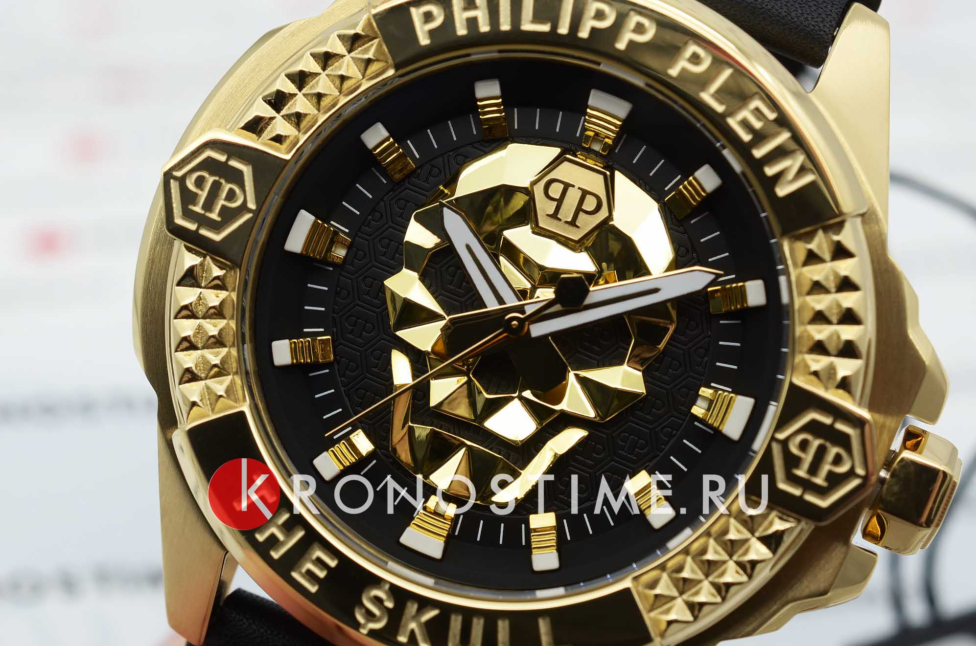 Яркие мужские часы с минеральным стекломМинеральное стеклоМинеральное стекло представляет собой искусственно выращенный минерал кварца. Такое стекло отличается особой устойчивостью к повреждениям и царапинам. Уступает по некоторым качествам сапфировому стеклу. Philipp Plein The Skull PWAAA0521, кварцевый механизм с высокой точностью. Класс водозащиты: 50 метров, позволит защитить корпус от случайных брызг или капель дождя. Корпус часов изготовлен из стали с IP-покрытиемIP-покрытиеМетод ионного напыления. Демонстрирует повышенную устойчивость к истиранию, окислению и химическим веществам. Под воздействием высокого давления и температуры около 1500°C молекулы металла надёжно соединяются с частицами корпуса часов..