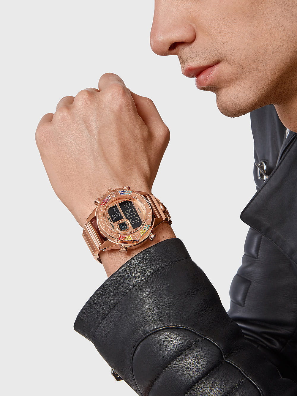 Яркие мужские часы Philipp Plein The G.O.A.T. PWFAA0721, кварцевый механизм с высокой точностью. Класс водозащиты: 50 метров, позволит защитить корпус от случайных брызг или капель дождя. Корпус часов изготовлен из стали, цвета.