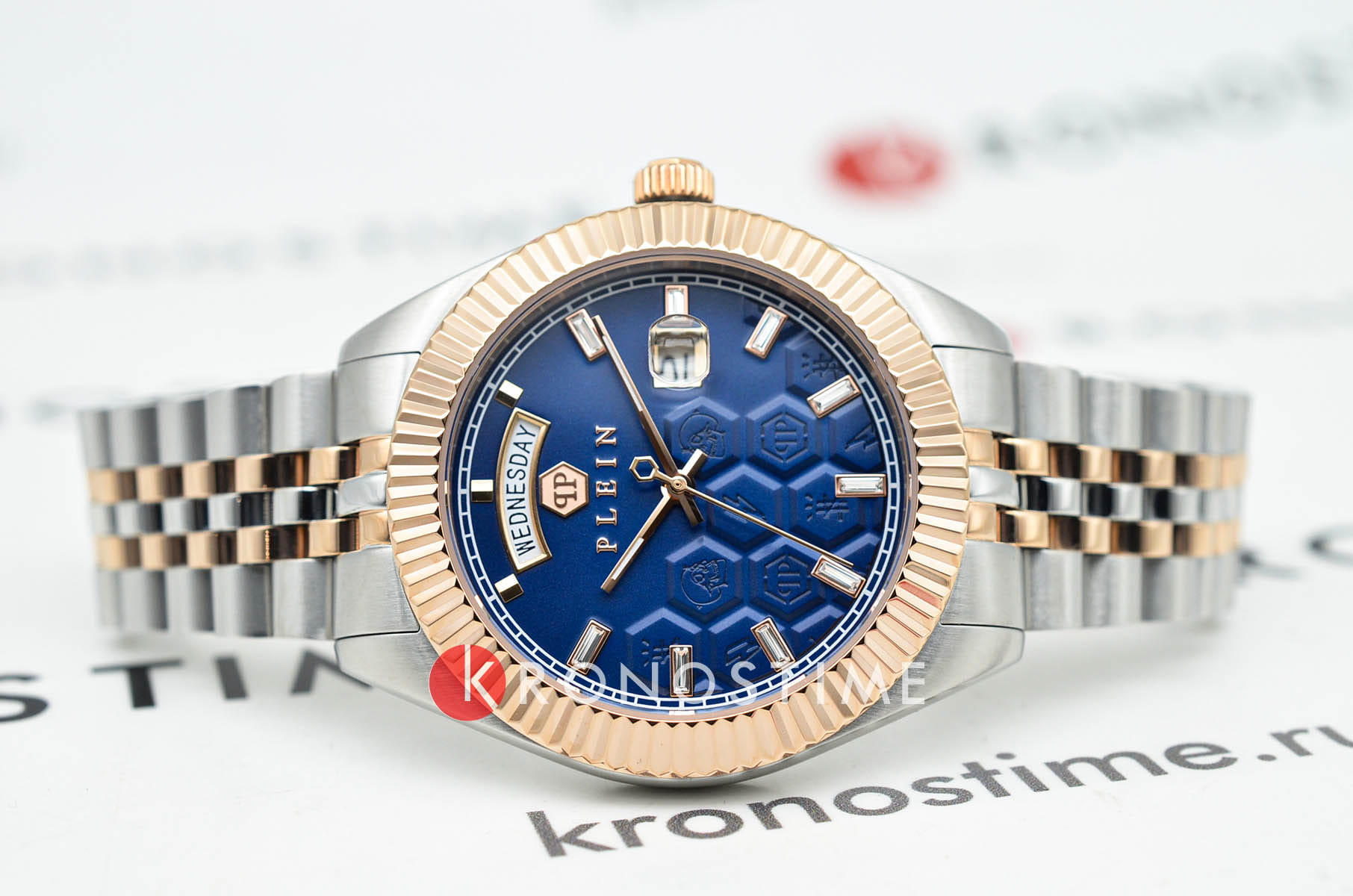 Мужские кварцевые часы Philipp Plein Date Superlative Gent PWPVA0524, кварцевый механизм с высокой точностью. Метки в виде штрихов. Минеральное стеклоМинеральное стеклоМинеральное стекло представляет собой искусственно выращенный минерал кварца. Такое стекло отличается особой устойчивостью к повреждениям и царапинам. Уступает по некоторым качествам сапфировому стеклу. устойчивое к мелким механическим повреждениям. Фирменная дизайнерская упаковка. БезельБезельВнешний ободок, закрепляющий стекло. В спортивных часах так называется поворотное кольцо с делениями на циферблате, выполняет роль таймера – замеряет отрезки времени на шкале. Неподвижный безель – элемент декора. Однонаправленно вращающийся безель на дайверских часах позволяет фиксировать моменты погружения и выныривания на поверхность. с IP-покрытиемIP-покрытиеМетод ионного напыления. Демонстрирует повышенную устойчивость к истиранию, окислению и химическим веществам. Под воздействием высокого давления и температуры около 1500°C молекулы металла надёжно соединяются с частицами корпуса часов.. Стрелки и метки с люминесцентным покрытиемЛюминесцентное покрытиеПозволяет считывать показания времени в темноте. Производители наносят на стрелки, часовые индексы, безель или поверхность циферблата светонакопительный состав, дающий холодное свечение.. Стальной браслет с частичным IP-покрытиемIP-покрытиеМетод ионного напыления. Демонстрирует повышенную устойчивость к истиранию, окислению и химическим веществам. Под воздействием высокого давления и температуры около 1500°C молекулы металла надёжно соединяются с частицами корпуса часов. на раскладной застёжкеРаскладная застёжкаТакой тип застёжки используется только на браслетах из металла. Она никогда не раскрывается полностью, происходит разделение на 2 и более частей. Раскладывающая застёжка снизит вероятность потери часов к минимуму.. Окошко дня недели находится в положении 12 часов.