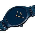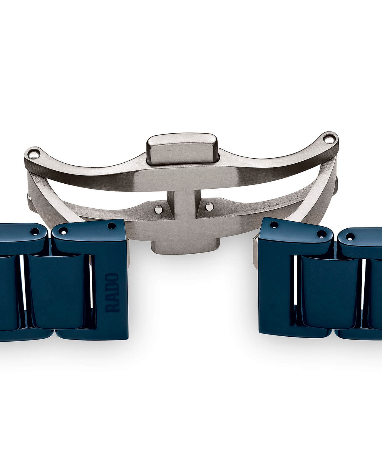 Оригинальный аксессуар в синем цвете привлекает «русскими мотивами»: задняя крышка украшена цветным изображением Жар-Птицы, а корпус, циферблат и браслет из высокотехнологичной керамикиВысокотехнологичная керамикаИнновационный запатентованный Rado материал с гладкой или матовой поверхностью. Керамика за счёт кристаллической структуры обладает повышенной устойчивостью от возникновения царапин. Материал способен принимать температуру тела человека, обеспечивая невероятный комфорт при ношении. декорированы узором в виде птичьего пера. Кварцевый калибр ETA 282.002 с высокой точностью хода. Антибликовая обработка сапфирового стекла. Водонепроницаемость до 3 бар. . Диаметр корпуса: 39 мм.