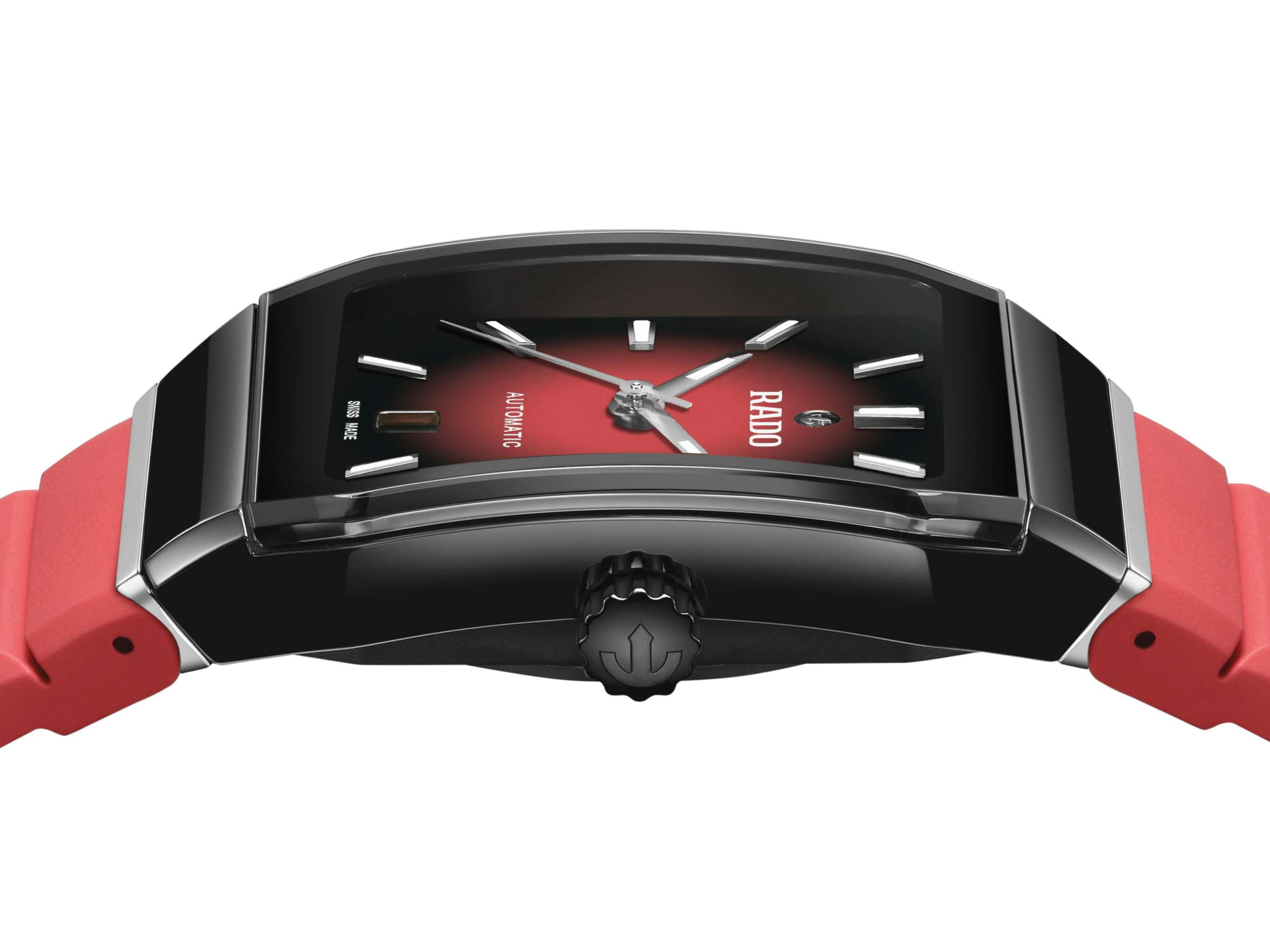 Универсальные механические часы с автоподзаводом Rado Anatom — это символ новаторского дизайна и максимального комфорта. Корпус размером 32,5 мм и толщиной 11,3 мм выполнен из высокотехнологичной керамикиВысокотехнологичная керамикаИнновационный запатентованный Rado материал с гладкой или матовой поверхностью. Керамика за счёт кристаллической структуры обладает повышенной устойчивостью от возникновения царапин. Материал способен принимать температуру тела человека, обеспечивая невероятный комфорт при ношении. и нержавеющей стали. Циферблат с градиентом от чёрного к красному оформлен накладными индексами и стрелками с люминесцентным покрытиемЛюминесцентное покрытиеПозволяет считывать показания времени в темноте. Производители наносят на стрелки, часовые индексы, безель или поверхность циферблата светонакопительный состав, дающий холодное свечение. Super-Luminova®, обеспечивающим отличную читаемость в темноте. Циферблат защищён сапфировым стекломСапфировое стеклоПрочный и надёжный материал из кристалла сапфира синтетического происхождения, характеризующийся особой твёрдостью и устойчивостью к царапинам и повреждениям. с металлизированным покрытием и симметричными фасками. В положении 12 часов расположен подвижной якорь — символ бренда, а в положении 6 часов — окошко даты. Механизм — автоматический с антимагнитной пружиной Nivachron™Nivachron™Специально разработанный инновационный сплав Nivachron™ повышает устойчивость часов к воздействию магнитных полей., отрегулированный в пяти положениях, с запасом хода 72 часа. Прозрачная задняя крышка с сапфировым стеклом позволяет наблюдать за работой механизма. Часы оснащены конусообразным каучуковым ремешком красного цвета и трёхсекционной застёжкой из матовой нержавеющей стали с крышкой из полированной керамики. Водонепроницаемость 50 м позволяет использовать часы в повседневных условиях. Гарантия — 2 года. Идеальный выбор для тех, кто ценит уникальный дизайн, комфорт и швейцарское качество.