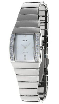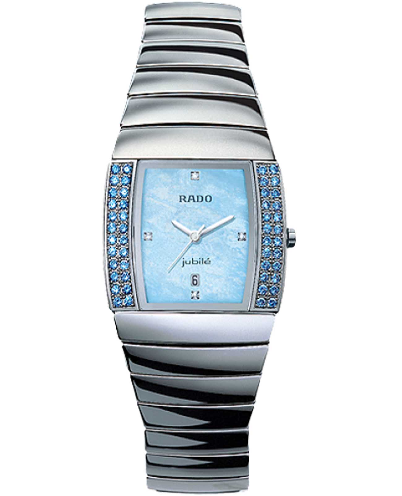 Часы Rado Sintra R13579912, произведение искусства и технологическое чудо, станут прекрасным дополнением к коллекции. Эти швейцарские часы оснащены кварцевым механизмом с указателем даты и тремя стрелками, заключенным в корпус из нержавеющей стали. Браслет изготовлен из высокотехнологичной керамикиВысокотехнологичная керамикаИнновационный запатентованный Rado материал с гладкой или матовой поверхностью. Керамика за счёт кристаллической структуры обладает повышенной устойчивостью от возникновения царапин. Материал способен принимать температуру тела человека, обеспечивая невероятный комфорт при ношении. с раскладной застёжкойРаскладная застёжкаТакой тип застёжки используется только на браслетах из металла. Она никогда не раскрывается полностью, происходит разделение на 2 и более частей. Раскладывающая застёжка снизит вероятность потери часов к минимуму.. Корпус украшен 48 бриллиантами (0,50 карата). Сапфировое стеклоСапфировое стеклоПрочный и надёжный материал из кристалла сапфира синтетического происхождения, характеризующийся особой твёрдостью и устойчивостью к царапинам и повреждениям. устойчивое к появлению царапин, обладающее высокой прозрачностью. Класс водозащиты: 30 метров, позволит защитить корпус от случайных брызг или капель дождя.