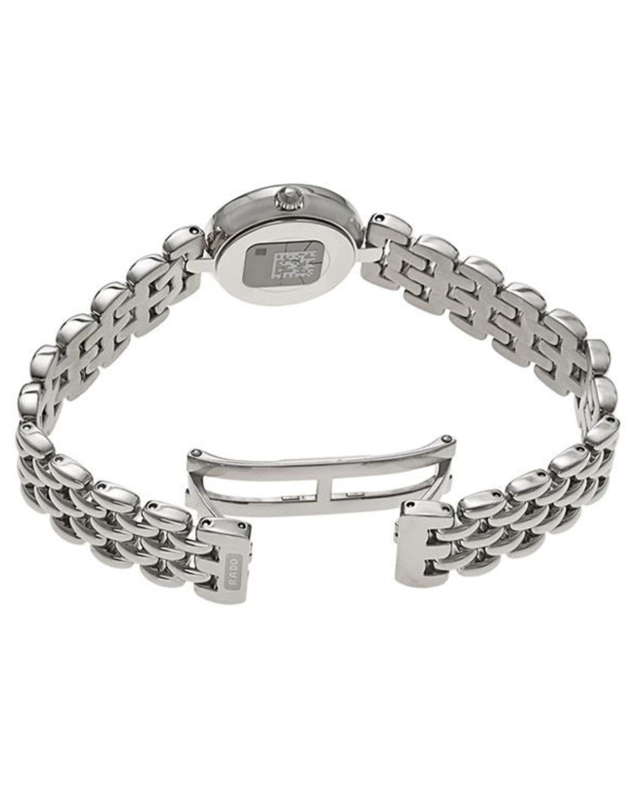 Женские швейцарские кварцевые часы Rado Florence Rondo R48744163. Сапфировое стеклоСапфировое стеклоПрочный и надёжный материал из кристалла сапфира синтетического происхождения, характеризующийся особой твёрдостью и устойчивостью к царапинам и повреждениям. устойчивое к мелким механическим повреждениям. Стальной браслет на застёжке-бабочке. Корпус и браслет часов изготовлены из нержавеющей стали. Класс водозащиты: 30 метров, позволит защитить корпус от случайных брызг или капель дождя. Циферблат украшен стразами.