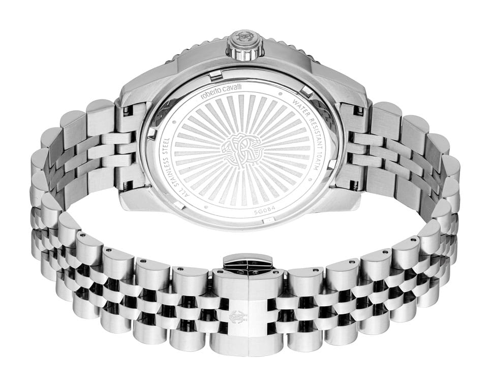 Погрузитесь в мир роскоши и безупречного стиля с мужскими наручными часами ROBERTO CAVALLI RC5G084M1065. Эти часы – воплощение смелого дизайна и итальянской элегантности, созданные для мужчины, который ценит внимание к деталям и не боится заявить о себе. Круглый корпус диаметром 42 мм выполнен из нержавеющей стали, толщина корпуса составляет 11 мм, что придает модели выразительный внешний вид и надежную защиту от внешних воздействий. Циферблат, искусно оформленный фирменными элементами Roberto Cavalli, притягивает взгляд и подчеркивает ваш безупречный вкус. Часы оснащены кварцевым механизмом, также обладают функцией отображения даты, что делает их удобными для ежедневного использования. Минеральное стеклоМинеральное стеклоМинеральное стекло представляет собой искусственно выращенный минерал кварца. Такое стекло отличается особой устойчивостью к повреждениям и царапинам. Уступает по некоторым качествам сапфировому стеклу. защищает часы от царапин. Водозащита 100 метров, позволит плавать, нырять и заниматься другими водными видами спорта. Стальной браслет на застёжке-бабочке с кнопкамиЗастёжка "бабочка"Такой вид застёжки дополняется предохранителями, помогающими избежать случайного раскрытия браслета. Обладают изящным исполнением. обеспечивает комфортное ношение. Поворотный безельБезельВнешний ободок, закрепляющий стекло. В спортивных часах так называется поворотное кольцо с делениями на циферблате, выполняет роль таймера – замеряет отрезки времени на шкале. Неподвижный безель – элемент декора. Однонаправленно вращающийся безель на дайверских часах позволяет фиксировать моменты погружения и выныривания на поверхность. с PVD-покрытиемPVDУльтратонкое покрытие наносится в технике вакуумного напыления, сочетает в себе нитрид титана особой прочности со слоем золота или оксида хрома. Несёт в себе декоративную или защитную функцию.. Стрелки и метки с люминесцентным покрытиемЛюминесцентное покрытиеПозволяет считывать показания времени в темноте. Производители наносят на стрелки, часовые индексы, безель или поверхность циферблата светонакопительный состав, дающий холодное свечение. обеспечивают отличную читаемость в любое время суток.