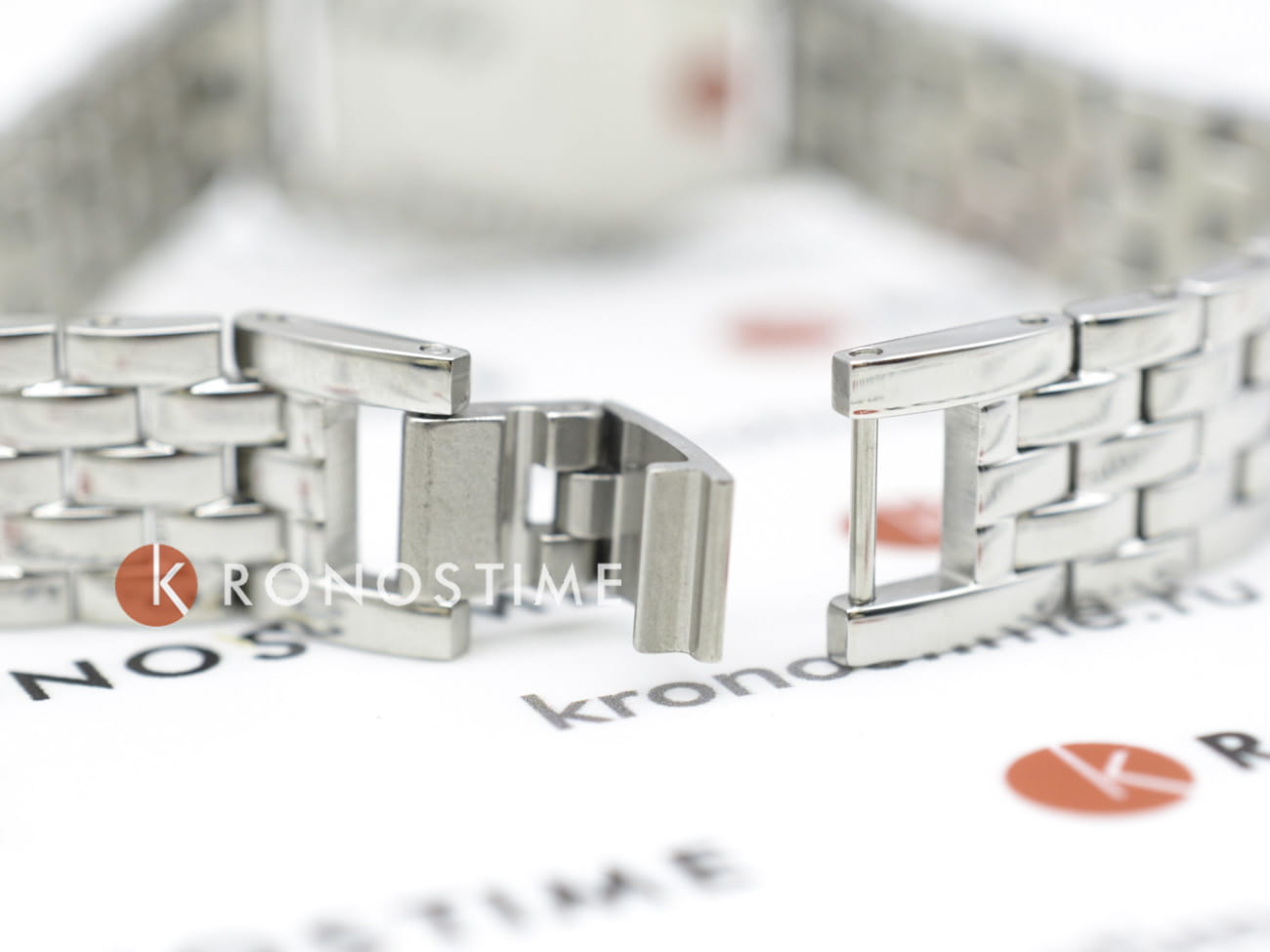 Женские кварцевые часы. Центральные часовая, минутная и секундная стрелки. Белый циферблат. Восьмиугольный корпус выполнен из полированной нержавеющей стали. Размер корпуса составляет 21,5 х 27,5 мм. Стальной браслет c ювелирной застежкой. Прочное минеральное стеклоМинеральное стеклоМинеральное стекло представляет собой искусственно выращенный минерал кварца. Такое стекло отличается особой устойчивостью к повреждениям и царапинам. Уступает по некоторым качествам сапфировому стеклу. устойчивое к мелким механическим повреждениям. Водостойкость WR 30 (брызги).