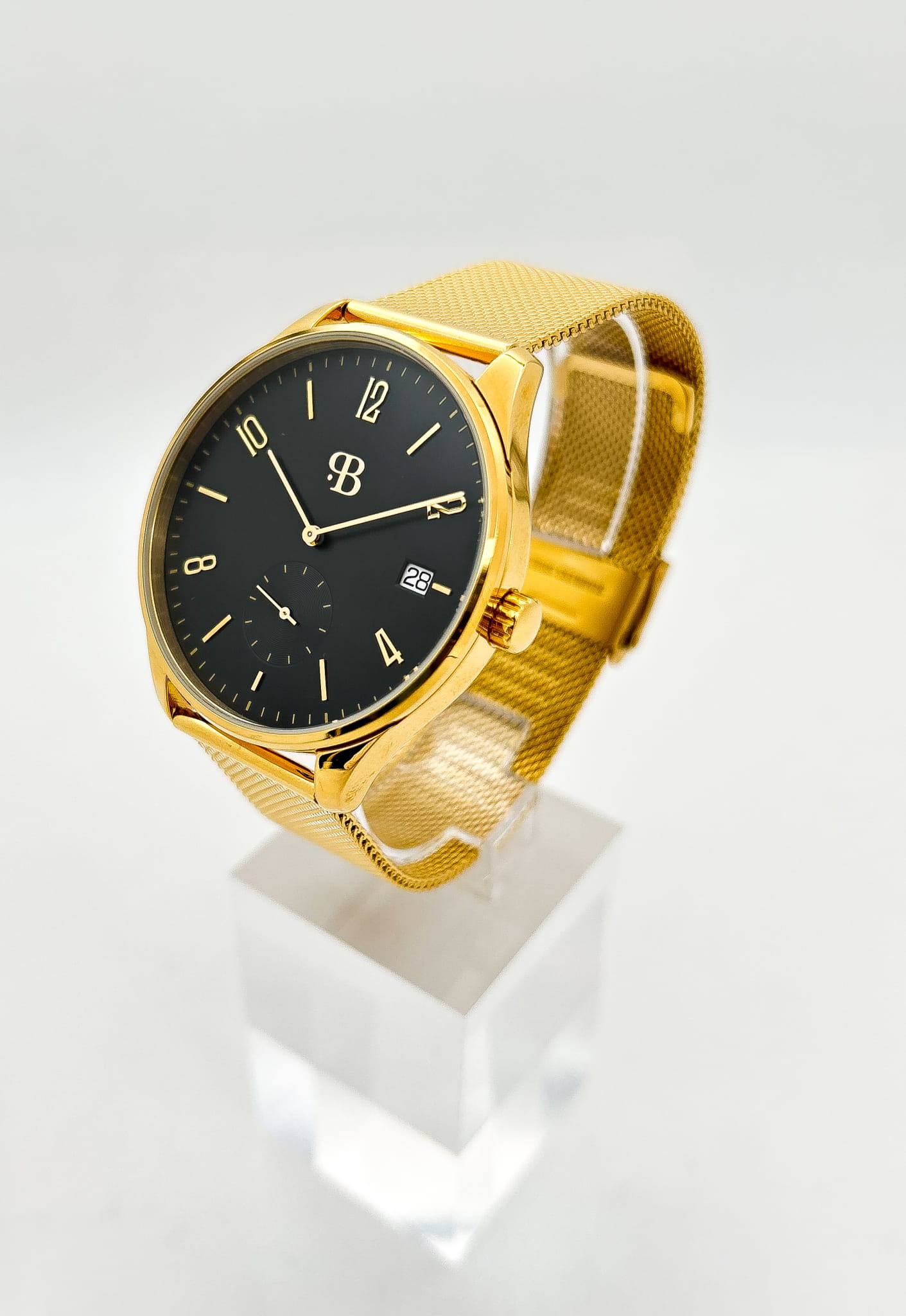Металлический браслет миланского плетения на раскладном замкеРаскладной замокДанный вариант застежки используется только на часах с металлическим браслетом. Отличительная особенность такого крепления в том, что длина браслета становится универсальной и вы можете самостоятельно отрегулировать нужный вам размер – застежка просто двигается по браслету часов. изготовлен из нержавеющей стали с PVD-покрытиемPVDУльтратонкое покрытие наносится в технике вакуумного напыления, сочетает в себе нитрид титана особой прочности со слоем золота или оксида хрома. Несёт в себе декоративную или защитную функцию., что обеспечивает прочность и долговечность.