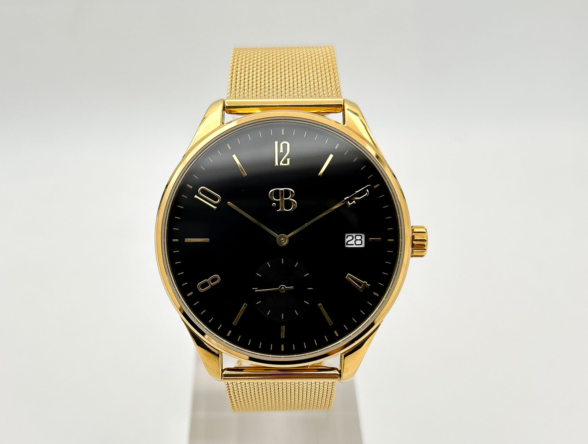 Стальной корпус круглой формы выполнен из нержавеющей стали с PVD-покрытиемPVDУльтратонкое покрытие наносится в технике вакуумного напыления, сочетает в себе нитрид титана особой прочности со слоем золота или оксида хрома. Несёт в себе декоративную или защитную функцию., что придает часам элегантный и премиальный вид. Циферблат с цифрами и метками в виде штрихов надежно защищен закаленным минеральным стекломМинеральное стеклоМинеральное стекло представляет собой искусственно выращенный минерал кварца. Такое стекло отличается особой устойчивостью к повреждениям и царапинам. Уступает по некоторым качествам сапфировому стеклу., что предотвращает появление царапин и повреждений.