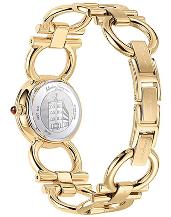 Женские швейцарские часы с сапфировым стеклом Salvatore Ferragamo chic SFYD00221, кварцевый механизм с высокой точностью. Сапфировое стекло устойчивое к появлению царапин, обладающее высокой прозрачностью. Класс водозащиты: 30 метров, позволит защитить корпус от случайных брызг или капель дождя. Корпус часов изготовлен из стали, золотистого цвета.