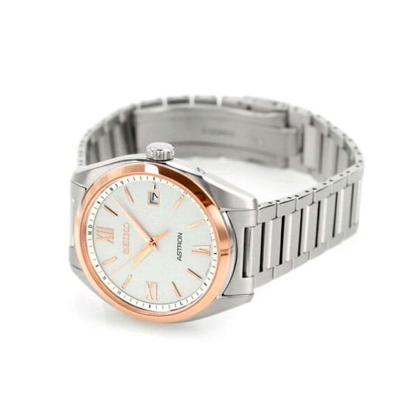 Мужские кварцевые часы Seiko — это высокотехнологичный аксессуар с солнечным питанием и радиосинхронизацией. Корпус размером 39×45,8 мм и толщиной 9,6 мм выполнен из гипоаллергенного титана. БезельБезельВнешний ободок, закрепляющий стекло. В спортивных часах так называется поворотное кольцо с делениями на циферблате, выполняет роль таймера – замеряет отрезки времени на шкале. Неподвижный безель – элемент декора. Однонаправленно вращающийся безель на дайверских часах позволяет фиксировать моменты погружения и выныривания на поверхность. с PVD-покрытиемPVDУльтратонкое покрытие наносится в технике вакуумного напыления, сочетает в себе нитрид титана особой прочности со слоем золота или оксида хрома. Несёт в себе декоративную или защитную функцию. розового золота. Циферблат белого цвета оформлен индексами и стрелками. Окошко даты расположено в положении 3 часов. Циферблат защищён сапфировым стекломСапфировое стеклоПрочный и надёжный материал из кристалла сапфира синтетического происхождения, характеризующийся особой твёрдостью и устойчивостью к царапинам и повреждениям. с антибликовым покрытиемАнтибликовое покрытиеСлой оксида металла в 0,13-0,3 микрон, благодаря которому стекло часов не бликует и не отражает свет. Антибликовое покрытие уменьшает отражение света в 10 раз, обеспечивая отличную читаемость показателей циферблата. для максимальной прозрачности. Механизм — кварцевый с технологией Tough SolarTough SolarТехнология основана на подзарядке аккумулятора от источника солнечного света, специальная панель улавливает солнечные лучи и преобразует их в энергию для работы часов. Достаточно пары минут нахождения на солнце для функционирования часов в течении суток., обеспечивающей работу до 9 месяцев в обычном режиме и до 2 лет в режиме энергосбережения. Часы поддерживают автоматическую радиокоррекцию времени, имеют функцию вечного календаряВечный календарьКлассическое часовое усложнение, представляющее собой календарь, рассчитанный на несколько лет вперёд (стандартно – до 2099 года). Определяет текущую дату, день недели, месяц. (до 2100 года) и устойчивы к магнитным полям. Часы оснащены титановым браслетом с раскладной застёжкойРаскладная застёжкаТакой тип застёжки используется только на браслетах из металла. Она никогда не раскрывается полностью, происходит разделение на 2 и более частей. Раскладывающая застёжка снизит вероятность потери часов к минимуму.. Водонепроницаемость 100 м позволяет использовать часы для плавания и повседневного ношения. Идеальный выбор для тех, кто ценит точность, лёгкость и передовые технологии.