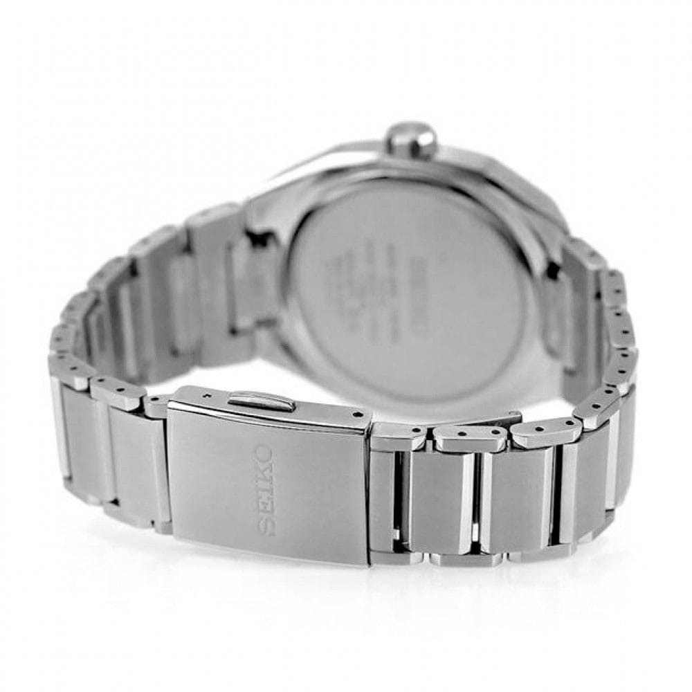 Мужские кварцевые часы Seiko — это высокотехнологичный аксессуар с солнечным питанием и радиосинхронизацией. Корпус диаметром 40 мм и толщиной 9,5 мм выполнен из гипоаллергенного титана. Циферблат белого цвета оформлен индексами и стрелками. Окошко даты расположено в положении 3 часов. Стрелки и метки с люминесцентным покрытиемЛюминесцентное покрытиеПозволяет считывать показания времени в темноте. Производители наносят на стрелки, часовые индексы, безель или поверхность циферблата светонакопительный состав, дающий холодное свечение. LumiBrite, обеспечивающим хорошую читаемость в темноте. Циферблат защищён выпуклым сапфировым стекломСапфировое стеклоПрочный и надёжный материал из кристалла сапфира синтетического происхождения, характеризующийся особой твёрдостью и устойчивостью к царапинам и повреждениям. с антибликовым покрытиемАнтибликовое покрытиеСлой оксида металла в 0,13-0,3 микрон, благодаря которому стекло часов не бликует и не отражает свет. Антибликовое покрытие уменьшает отражение света в 10 раз, обеспечивая отличную читаемость показателей циферблата. для максимальной прозрачности. Механизм — кварцевый с технологией Tough SolarTough SolarТехнология основана на подзарядке аккумулятора от источника солнечного света, специальная панель улавливает солнечные лучи и преобразует их в энергию для работы часов. Достаточно пары минут нахождения на солнце для функционирования часов в течении суток., обеспечивающей работу до 9 месяцев в обычном режиме и до 2 лет в режиме энергосбережения. Часы поддерживают автоматическую радиокоррекцию времени, имеют функцию вечного календаряВечный календарьКлассическое часовое усложнение, представляющее собой календарь, рассчитанный на несколько лет вперёд (стандартно – до 2099 года). Определяет текущую дату, день недели, месяц. (до 2100 года), устойчивы к магнитным полям и оснащены защитой от перезарядки. Часы оснащены титановым браслетом шириной 20 мм с раскладной застёжкойРаскладная застёжкаТакой тип застёжки используется только на браслетах из металла. Она никогда не раскрывается полностью, происходит разделение на 2 и более частей. Раскладывающая застёжка снизит вероятность потери часов к минимуму.. Водонепроницаемость 100 м позволяет использовать часы для плавания и повседневного ношения. Идеальный выбор для тех, кто ценит точность, лёгкость и передовые технологии.