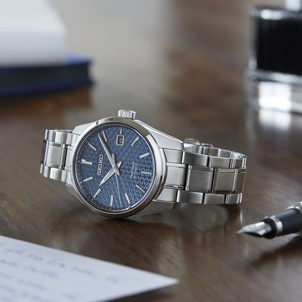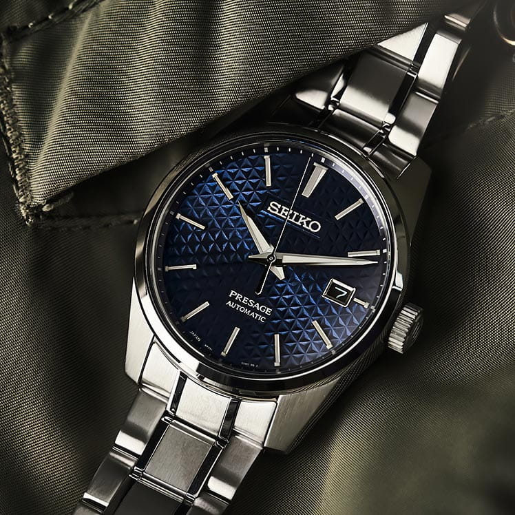 Механические часы Seiko Presage Sharp Edged SPB167 — это стильная новинка, которая выгодно подчеркнёт образ элегантного мужчины. Дизайн циферблата вдохновлён древним японским узором «Асаноха», известным ещё с эпохи Хэйан и отражающим философию гармонии и природной целостности. Часы оснащены калибром 6R35 — проверенным механизмом с автоподзаводом и возможностью ручной подзаводки. Механизм имеет 24 драгоценных камня и обеспечивает внушительный запас хода до 70 часов. Также реализована функция стоп-секунды для точной установки времени. Циферблат оформлен штриховыми метками, а информация о дате вынесена в отдельное окошко, что делает функционал часов удобным в повседневной носке. Стрелки и индексы дополнены люминесцентным покрытиемЛюминесцентное покрытиеПозволяет считывать показания времени в темноте. Производители наносят на стрелки, часовые индексы, безель или поверхность циферблата светонакопительный состав, дающий холодное свечение. LumiBrite, обеспечивающим отличную читаемость даже в условиях слабого освещения. Защиту циферблата обеспечивает сапфировое стеклоСапфировое стеклоПрочный и надёжный материал из кристалла сапфира синтетического происхождения, характеризующийся особой твёрдостью и устойчивостью к царапинам и повреждениям. с антибликовым покрытием на внутренней поверхности, что делает его устойчивым к царапинам и удобным для считывания информации при любом освещении. Корпус изготовлен из нержавеющей стали, а задняя крышка — завинчивающаяся и прозрачная, что позволяет рассмотреть работу механизма и подчёркивает внимание к деталям внутренней отделки. Браслет выполнен из стали и оснащён раскладной застёжкойРаскладная застёжкаТакой тип застёжки используется только на браслетах из металла. Она никогда не раскрывается полностью, происходит разделение на 2 и более частей. Раскладывающая застёжка снизит вероятность потери часов к минимуму. с кнопочным механизмом, обеспечивающей комфорт и надёжность при ношении. Часы обладают водонепроницаемостью WR 100, что позволяет использовать их при плавании или занятиях водными видами спорта без глубокого погружения. Эти часы станут идеальным аксессуаром для тех, кто ценит точность, историю и эстетику — универсальный спутник, подчёркивающий статус и индивидуальность своего владельца.