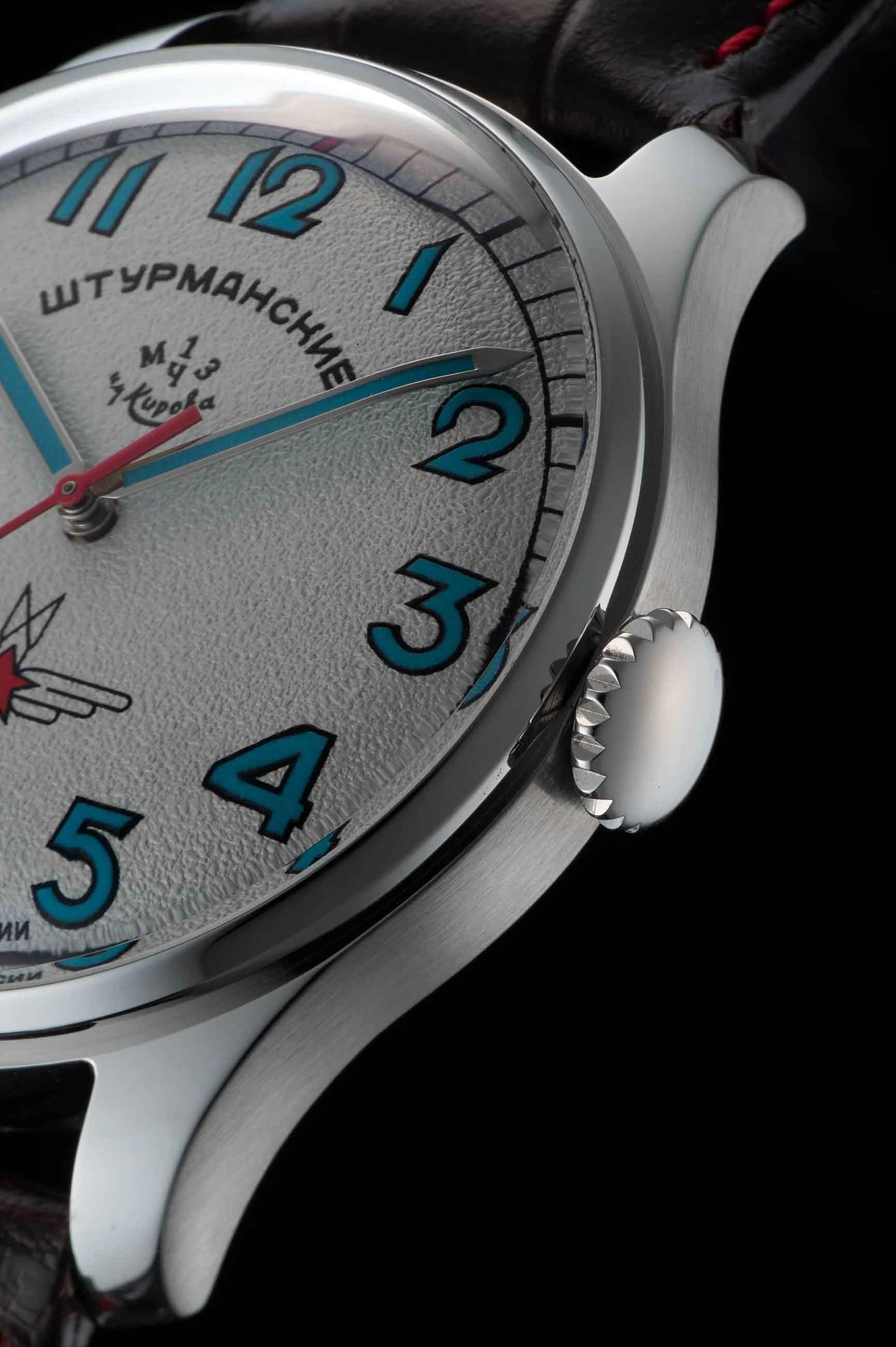 Лимитированные мужские российские механические часы Штурманские Гагарин Наследие 2609/9045923, механический механизм (автоматический калибр) с высокой точностью. Лимитированная серия - 500 экземпляров. Сапфировое стеклоСапфировое стеклоПрочный и надёжный материал из кристалла сапфира синтетического происхождения, характеризующийся особой твёрдостью и устойчивостью к царапинам и повреждениям. устойчивое к появлению царапин, обладающее высокой прозрачностью. Класс водозащиты: 30 метров, позволит защитить корпус от случайных брызг или капель дождя. Корпус часов изготовлен из стали. Ограниченная серия 2022 г. в 999 штук, выполнена из стали 904L на каждом корпусе которых поставлен индивидуальный номер модели, а так же на задней стороне лапки есть клеймо СТАЛЬ 904. Кожаный ремешок на стандартной застёжке. Стрелки и метки с люминесцентным покрытиемЛюминесцентное покрытиеПозволяет считывать показания времени в темноте. Производители наносят на стрелки, часовые индексы, безель или поверхность циферблата светонакопительный состав, дающий холодное свечение.. Задняя крышка с барельефом Гагарина. Чёткая, читаемая минутная шкала уходит за приделы видимой области циферблата, подчёркивая изящность ободка корпуса. Оцифровка циферблата – отличительная особенность данной модели, её дизайн не изменился с самой первый, гагаринской серии. Заводная головка конической формы с удобной насечкой повторяет дизайн оригинальной модели.