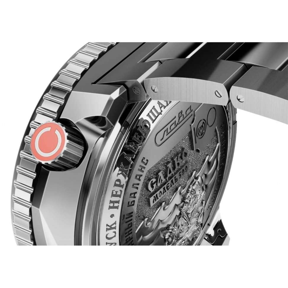 Стильные часы Слава Садко 5007170/100-2427 — станут надежным спутником как в повседневной жизни, так и при покорении морских глубин. Эти часы, созданные в России, оснащены механическим механизмом Слава 2427 с автоподзаводом, который обеспечивает точность и надежность. Корпус выполнен из высококачественной стали 316L. Поворотный безельБезельВнешний ободок, закрепляющий стекло. В спортивных часах так называется поворотное кольцо с делениями на циферблате, выполняет роль таймера – замеряет отрезки времени на шкале. Неподвижный безель – элемент декора. Однонаправленно вращающийся безель на дайверских часах позволяет фиксировать моменты погружения и выныривания на поверхность. часов с IP-покрытиемIP-покрытиеМетод ионного напыления. Демонстрирует повышенную устойчивость к истиранию, окислению и химическим веществам. Под воздействием высокого давления и температуры около 1500°C молекулы металла надёжно соединяются с частицами корпуса часов. красного и синего цвета придаёт модели особую элегантность и долговечность. Яркий красный циферблат с метками в виде штрихов надежно защищён сапфировым стекломСапфировое стеклоПрочный и надёжный материал из кристалла сапфира синтетического происхождения, характеризующийся особой твёрдостью и устойчивостью к царапинам и повреждениям., толщина которого составляет 3 мм. Заводная головка с защитой, расположенная в положении 2 часа, и литой стальной браслет с застежкой «бабочка»Застёжка "бабочка"Такой вид застёжки дополняется предохранителями, помогающими избежать случайного раскрытия браслета. Обладают изящным исполнением. обеспечивают комфорт и удобство в использовании. Эти часы имеют водозащиту 500WR, позволяя погружаться на глубину до 50 атмосфер, что делает их идеальными для дайвинга. Автоматический гелиевый клапан добавляет дополнительную надежность при подводных приключениях. Функциональность часов дополнена календарём с отображением числа и дня недели, который удобно расположен в позиции 6 часов. Кнопка быстрого перевода календаря делает настройку простой и лёгкой. Стрелки и метки обладают люминесцентным покрытиемЛюминесцентное покрытиеПозволяет считывать показания времени в темноте. Производители наносят на стрелки, часовые индексы, безель или поверхность циферблата светонакопительный состав, дающий холодное свечение., которое светится в темноте после зарядки на свету, обеспечивая отличную видимость в любых условиях. Каждый экземпляр из лимитированной серии в 500 штук уникален и имеет номер на задней крышке, украшенной объёмным изображением, выполненным методом чеканки. Механизм часов поддерживает 25 камней и работает с частотой 18000 полуколебаний в час, предлагая запас хода до 40 часов и возможность ручного завода. Противоударное устройство оси баланса добавляет уверенности в их долговечности. Эти часы — идеальный выбор для тех, кто ценит стиль, надежность и функциональность в одном аксессуаре.