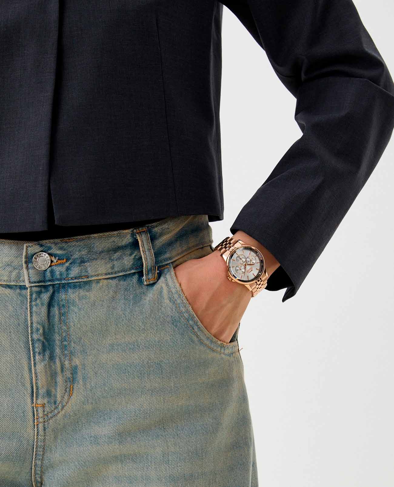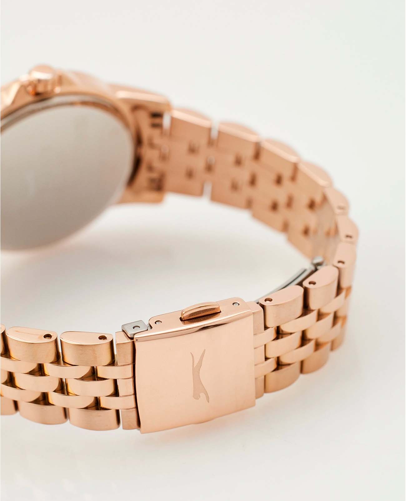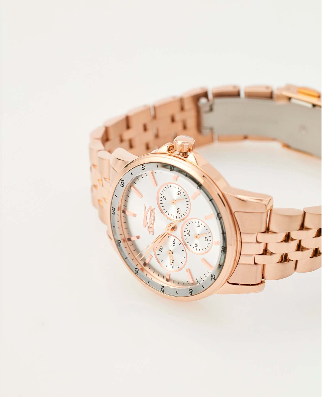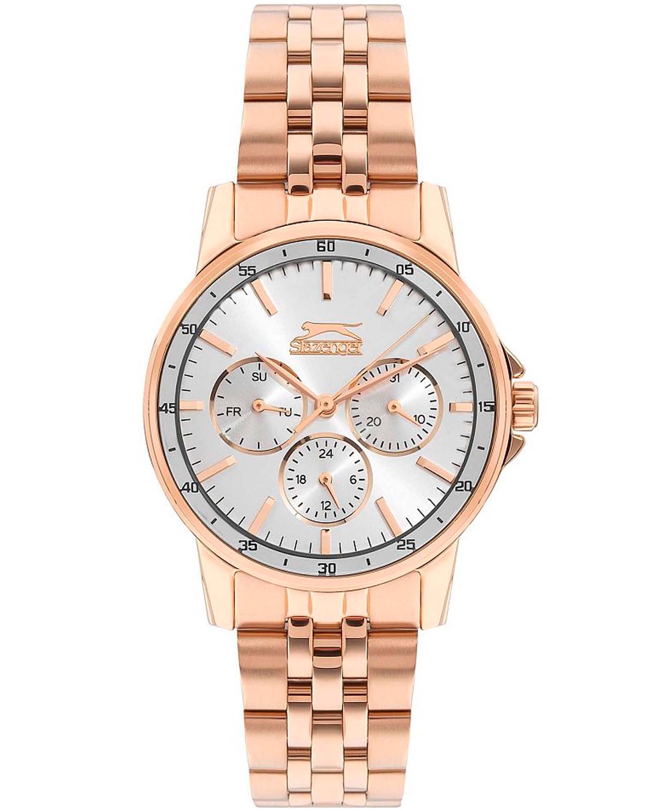 Женские наручные часы Slazenger SL.09.2009.4.07 сочетают в себе элегантный дизайн и практичность современных технологий. Модель обладает круглым корпусом диаметром 36 мм, изготовленным из суперметалла с IP-покрытиемIP-покрытиеМетод ионного напыления. Демонстрирует повышенную устойчивость к истиранию, окислению и химическим веществам. Под воздействием высокого давления и температуры около 1500°C молекулы металла надёжно соединяются с частицами корпуса часов., что обеспечивает высокую устойчивость к внешним воздействиям. Браслет выполнен из того же материала с раскладной застежкойРаскладная застёжкаТакой тип застёжки используется только на браслетах из металла. Она никогда не раскрывается полностью, происходит разделение на 2 и более частей. Раскладывающая застёжка снизит вероятность потери часов к минимуму., гарантирующей комфортное ношение. Серебристый циферблат оснащен индексами для лучшей читаемости времени и дополнен функцией отображения даты, а также дня недели на малых циферблатах. Для защиты применяется минеральное стеклоМинеральное стеклоМинеральное стекло представляет собой искусственно выращенный минерал кварца. Такое стекло отличается особой устойчивостью к повреждениям и царапинам. Уступает по некоторым качествам сапфировому стеклу., обеспечивающее прочную защиту от царапин. Часы работают на японском кварцевом механизме, который питается от батарейки и гарантирует точное время без необходимости подзаводки. Водонепроницаемость составляет 3 атмосферы (30 метров), что позволяет использовать их в повседневной жизни, но не рекомендуется для плавания или занятий водными видами спорта.