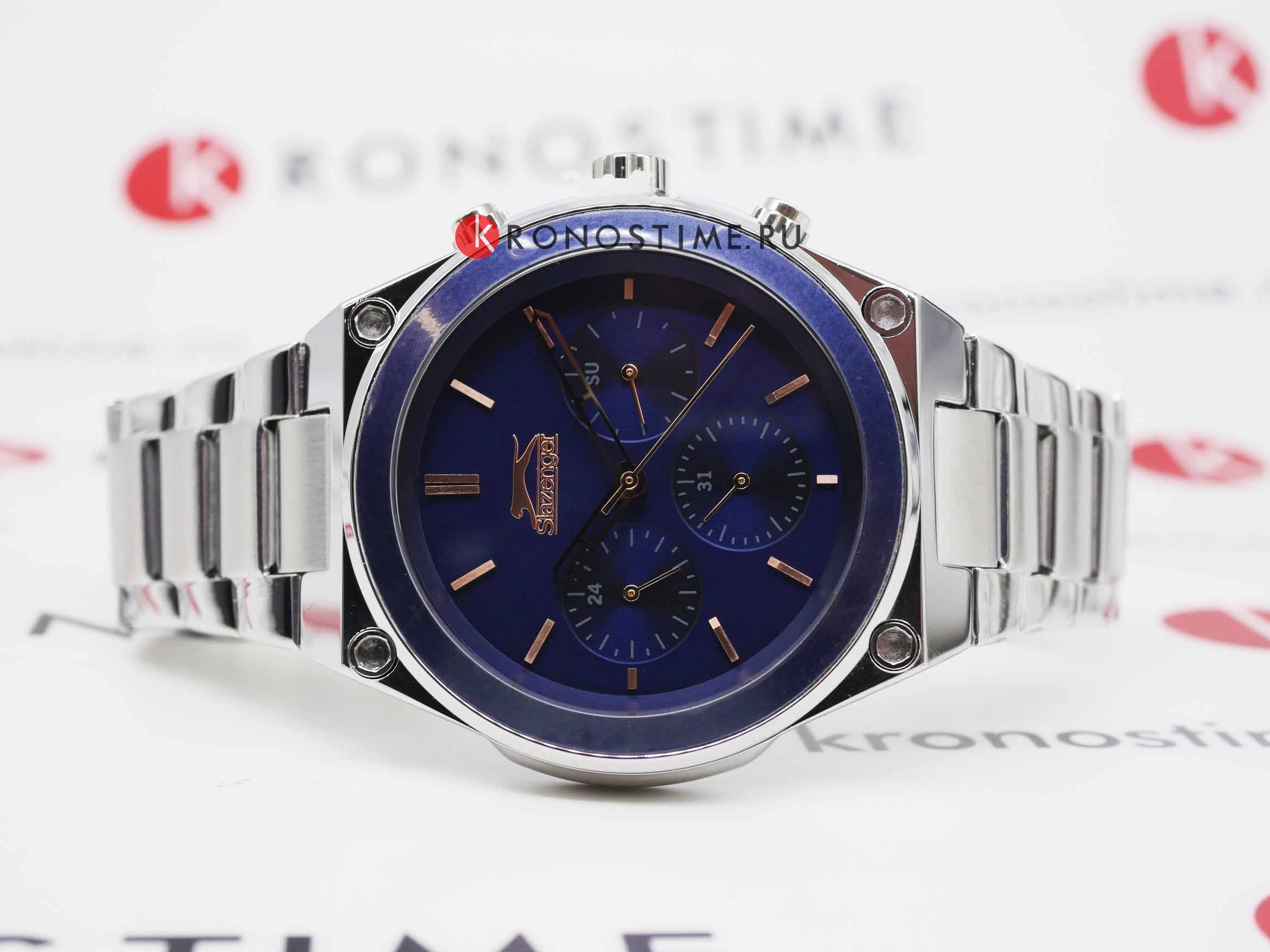 Мужские наручные часы Slazenger SL.09.2027.2.04 сочетают в себе классический дизайн и надежность современных технологий. Модель обладает круглым корпусом диаметром 45 мм, изготовленным из суперметалла. БезельБезельВнешний ободок, закрепляющий стекло. В спортивных часах так называется поворотное кольцо с делениями на циферблате, выполняет роль таймера – замеряет отрезки времени на шкале. Неподвижный безель – элемент декора. Однонаправленно вращающийся безель на дайверских часах позволяет фиксировать моменты погружения и выныривания на поверхность. с IP-покрытиеIP-покрытиеМетод ионного напыления. Демонстрирует повышенную устойчивость к истиранию, окислению и химическим веществам. Под воздействием высокого давления и температуры около 1500°C молекулы металла надёжно соединяются с частицами корпуса часов., что обеспечивает высокую устойчивость к внешним воздействиям. Браслет выполнен из суперметалла с раскладной застежкойРаскладной замокДанный вариант застежки используется только на часах с металлическим браслетом. Отличительная особенность такого крепления в том, что длина браслета становится универсальной и вы можете самостоятельно отрегулировать нужный вам размер – застежка просто двигается по браслету часов., гарантирующей комфортное ношение и безопасность.