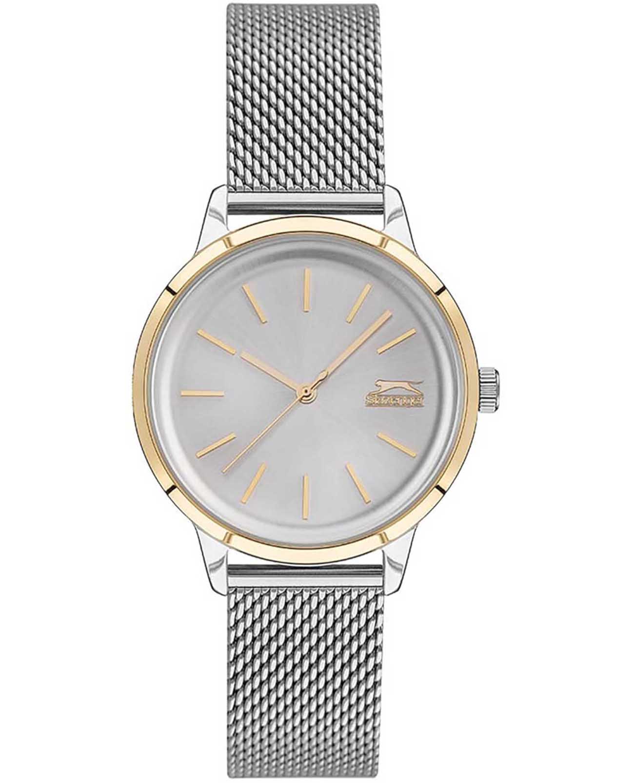 Slazenger SL.09.2028.3.05 – элегантные женские часы, сочетающие стильный дизайн и функциональность. Корпус диаметром 36 мм и толщиной 9 мм выполнен из суперметалла, обеспечивающего прочность и долговечность. Циферблат защищён минеральным стекломМинеральное стеклоМинеральное стекло представляет собой искусственно выращенный минерал кварца. Такое стекло отличается особой устойчивостью к повреждениям и царапинам. Уступает по некоторым качествам сапфировому стеклу., устойчивым к царапинам. БезельБезельВнешний ободок, закрепляющий стекло. В спортивных часах так называется поворотное кольцо с делениями на циферблате, выполняет роль таймера – замеряет отрезки времени на шкале. Неподвижный безель – элемент декора. Однонаправленно вращающийся безель на дайверских часах позволяет фиксировать моменты погружения и выныривания на поверхность. с IP-покрытиемIP-покрытиеМетод ионного напыления. Демонстрирует повышенную устойчивость к истиранию, окислению и химическим веществам. Под воздействием высокого давления и температуры около 1500°C молекулы металла надёжно соединяются с частицами корпуса часов.. Часы оснащены точным кварцевым механизмом, обеспечивающим надёжное отображение времени. Браслет из суперметалла миланского плетения на раскладном замкеРаскладной замокДанный вариант застежки используется только на часах с металлическим браслетом. Отличительная особенность такого крепления в том, что длина браслета становится универсальной и вы можете самостоятельно отрегулировать нужный вам размер – застежка просто двигается по браслету часов., обеспечивающей комфортное ношение и надёжную фиксацию на запястье. Водозащита до 30 метров (3 ATM) защищает часы от случайных брызг и дождя, делая их подходящими для повседневного использования.