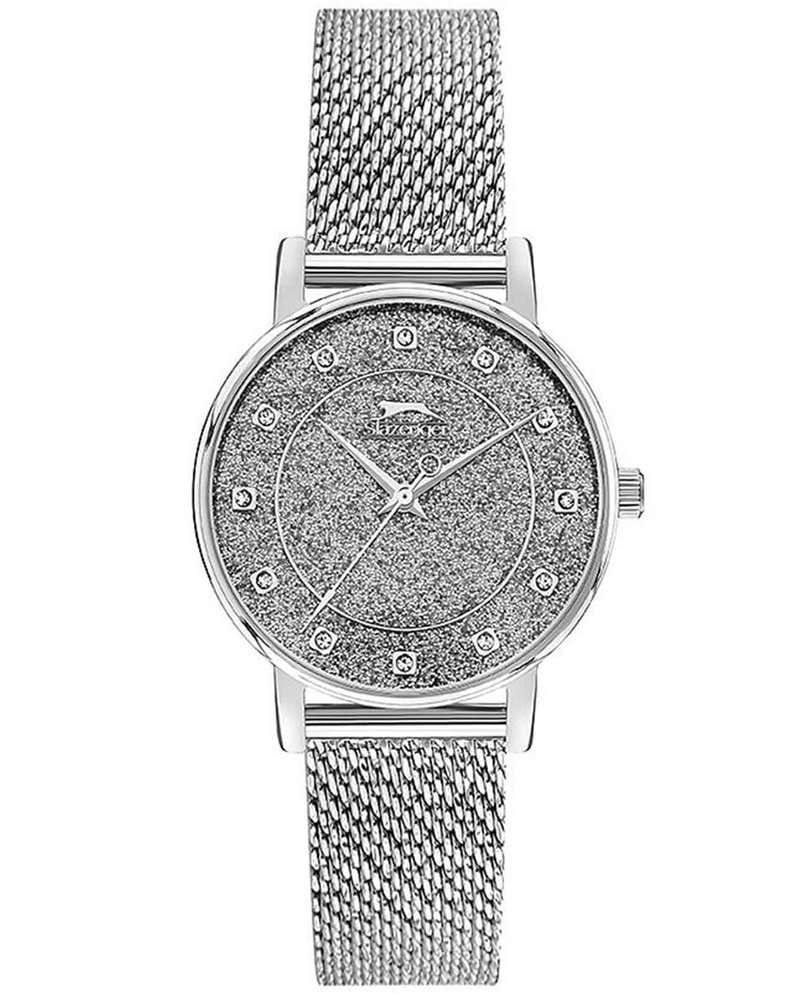 Часы Slazenger SL.09.2053.3.01 — это воплощение элегантности и современного стиля, которые придутся по вкусу каждой женщине. Серебристый блестящий циферблат придает часам утонченный вид, гармонично сочетаясь с корпусом и безелемБезельВнешний ободок, закрепляющий стекло. В спортивных часах так называется поворотное кольцо с делениями на циферблате, выполняет роль таймера – замеряет отрезки времени на шкале. Неподвижный безель – элемент декора. Однонаправленно вращающийся безель на дайверских часах позволяет фиксировать моменты погружения и выныривания на поверхность. из суперметалла серебристого цвета. Эти часы оснащены надежным кварцевым механизмом, который обеспечивает точность и долговечность. Водозащита уровня 3 ATM защитит от случайных брызг, а минеральное стеклоМинеральное стеклоМинеральное стекло представляет собой искусственно выращенный минерал кварца. Такое стекло отличается особой устойчивостью к повреждениям и царапинам. Уступает по некоторым качествам сапфировому стеклу. сохранит циферблат от царапин. Изюминкой дизайна являются фианиты, добавляющие блеск и изысканность. Серебристый браслет с миланским плетением, оснащенный раскладным замкомРаскладной замокДанный вариант застежки используется только на часах с металлическим браслетом. Отличительная особенность такого крепления в том, что длина браслета становится универсальной и вы можете самостоятельно отрегулировать нужный вам размер – застежка просто двигается по браслету часов., обеспечивает комфорт и стильное прилегание к запястью. Диаметр корпуса составляет 34 мм, а толщина — 9 мм, что делает эти часы универсальным аксессуаром для любого наряда.