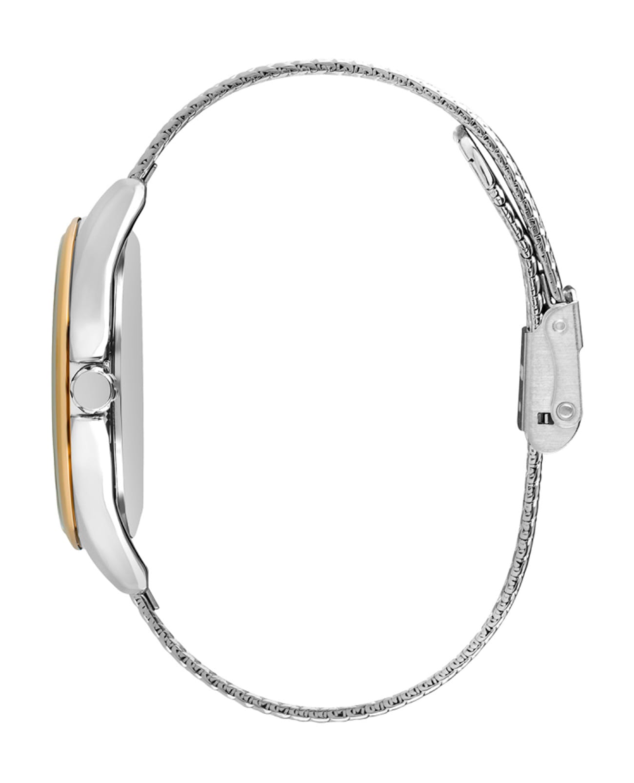 Женские наручные часы Slazenger SL.09.2074.3.03 сочетают в себе элегантный дизайн и функциональность. Модель обладает круглым корпусом диаметром 327 мм, изготовленным из суперметалла. БезельБезельВнешний ободок, закрепляющий стекло. В спортивных часах так называется поворотное кольцо с делениями на циферблате, выполняет роль таймера – замеряет отрезки времени на шкале. Неподвижный безель – элемент декора. Однонаправленно вращающийся безель на дайверских часах позволяет фиксировать моменты погружения и выныривания на поверхность. с IP-покрытиемIP-покрытиеМетод ионного напыления. Демонстрирует повышенную устойчивость к истиранию, окислению и химическим веществам. Под воздействием высокого давления и температуры около 1500°C молекулы металла надёжно соединяются с частицами корпуса часов., что обеспечивает высокую устойчивость к внешним воздействиям. Браслет выполнен из того же материала на раскладном замкеРаскладной замокДанный вариант застежки используется только на часах с металлическим браслетом. Отличительная особенность такого крепления в том, что длина браслета становится универсальной и вы можете самостоятельно отрегулировать нужный вам размер – застежка просто двигается по браслету часов., гарантирующей комфортное ношение и безопасность. Для защиты используется минеральное стеклоМинеральное стеклоМинеральное стекло представляет собой искусственно выращенный минерал кварца. Такое стекло отличается особой устойчивостью к повреждениям и царапинам. Уступает по некоторым качествам сапфировому стеклу., обеспечивающее прочную защиту от царапин. Часы работают на кварцевом механизме, что гарантирует точное время без необходимости подзаводки. Водонепроницаемость достигает 3 атмосфер (WR30), что позволяет использовать их при контакте с брызгами воды, однако не рекомендуется для плавания или дайвинга.