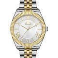Женские кварцевые часы Slazenger SL.09.2150.3.02 — это стильный и элегантный аксессуар с корпусом из суперметалла с IP-покрытиемIP-покрытиеМетод ионного напыления. Демонстрирует повышенную устойчивость к истиранию, окислению и химическим веществам. Под воздействием высокого давления и температуры около 1500°C молекулы металла надёжно соединяются с частицами корпуса часов.. Корпус круглой формы защищён минеральным стекломМинеральное стеклоМинеральное стекло представляет собой искусственно выращенный минерал кварца. Такое стекло отличается особой устойчивостью к повреждениям и царапинам. Уступает по некоторым качествам сапфировому стеклу.. Циферблат серебристого цвета оформлен римскими цифрами и метками, придающими модели классический вид. Браслет из суперметалла комбинированного цвета — серебристого и золотистого — фиксируется на раскладной застёжкеРаскладная застёжкаТакой тип застёжки используется только на браслетах из металла. Она никогда не раскрывается полностью, происходит разделение на 2 и более частей. Раскладывающая застёжка снизит вероятность потери часов к минимуму., обеспечивая удобство и надёжность ношения. Часы сочетают в себе современный дизайн и надёжность, идеально подходя для повседневного и делового образа. Водонепроницаемость 30 м позволяет использовать их в повседневных условиях, защищая от случайных брызг и капель дождя.