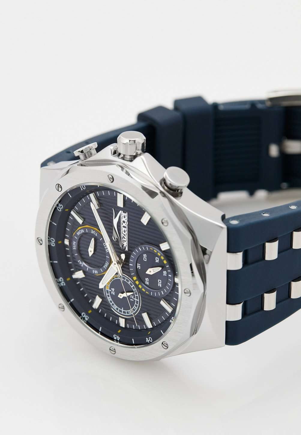 Мужские наручные часы Slazenger SL.09.2218.2.03 — идеальный аксессуар для тех, кто ценит стиль и функциональность. Эти часы, созданные известным британским брендом, отличаются высоким качеством и надежностью. Оснащенные кварцевым механизмом, они гарантируют точность хода и долгий срок службы. Корпус часов выполнен из прочного металла, а синий циферблат защищен минеральным стекломМинеральное стеклоМинеральное стекло представляет собой искусственно выращенный минерал кварца. Такое стекло отличается особой устойчивостью к повреждениям и царапинам. Уступает по некоторым качествам сапфировому стеклу., устойчивым к царапинам и повреждениям. Синий резиновый ремешок с металлическими вставками и классической застежкой обеспечивает комфортное ношение и надежную фиксацию на запястье. Диаметр корпуса составляет 46 мм, а толщина — 12 мм, что придает часам современный и стильный вид. Благодаря водозащите уровня WR 50, вы можете не беспокоиться о случайных попаданиях влаги, что делает эти часы идеальными для повседневного использования. Стрелки снабжены люминесцентным покрытиемЛюминесцентное покрытиеПозволяет считывать показания времени в темноте. Производители наносят на стрелки, часовые индексы, безель или поверхность циферблата светонакопительный состав, дающий холодное свечение., что позволяет легко считывать время в темноте. Функциональность модели включает в себя отображение даты, дня недели и времени в 24-часовом формате на дополнительных малых циферблатах, что делает часы не только стильными, но и практичными.