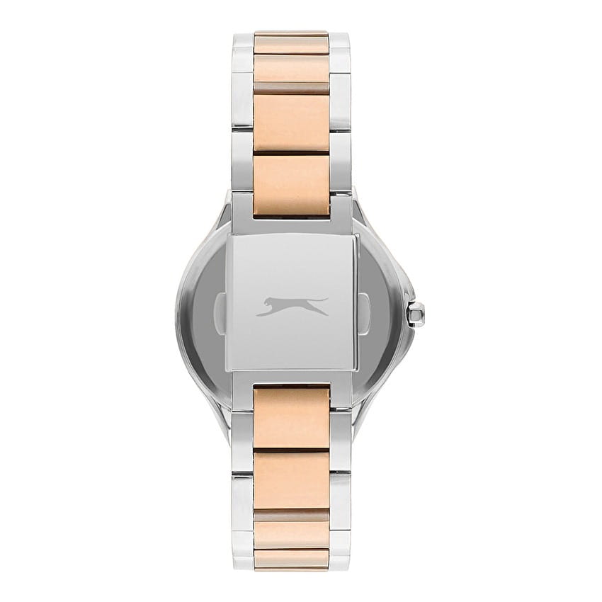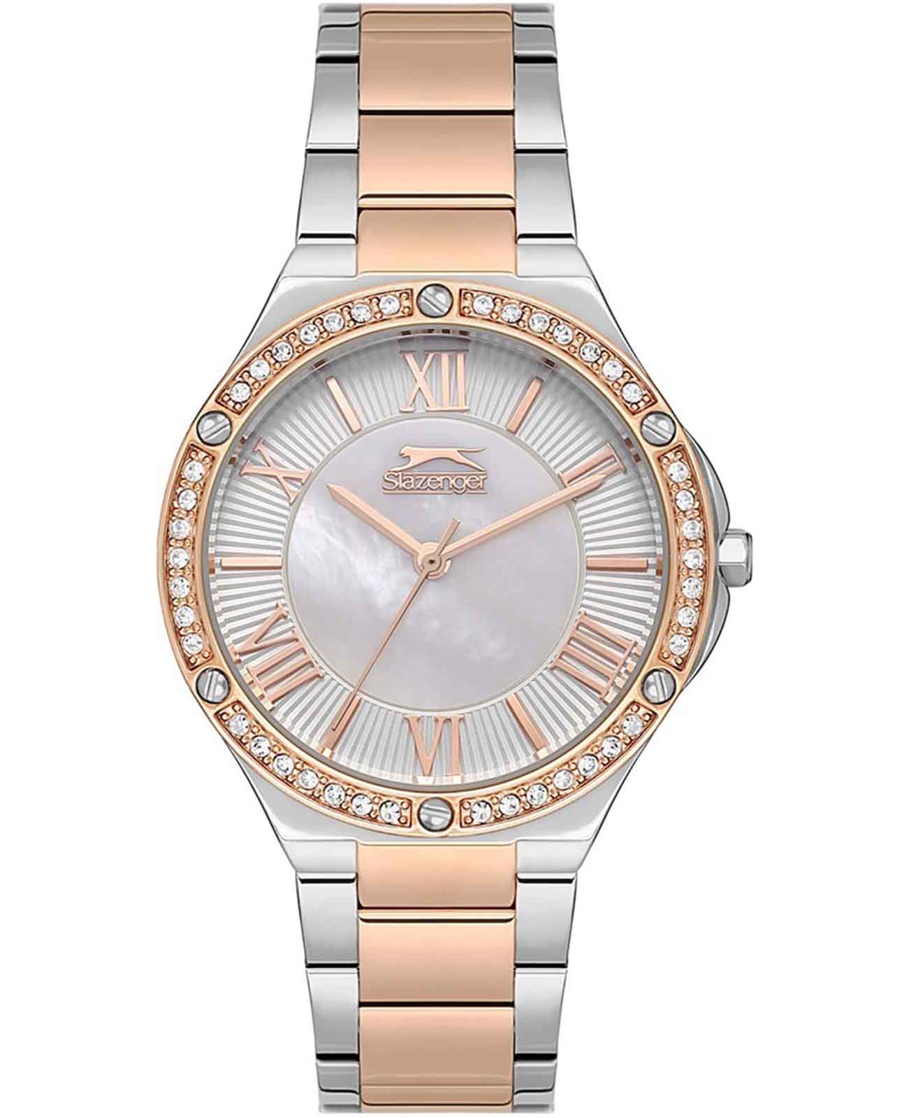 Часы Slazenger SL.09.2225.3.02 — это изысканный аксессуар, который подчеркнёт ваш стиль и индивидуальность. Модель оснащена надёжным кварцевым механизмом, обеспечивающим точность хода. Корпус из прочного металла диаметром 35 мм, а безельБезельВнешний ободок, закрепляющий стекло. В спортивных часах так называется поворотное кольцо с делениями на циферблате, выполняет роль таймера – замеряет отрезки времени на шкале. Неподвижный безель – элемент декора. Однонаправленно вращающийся безель на дайверских часах позволяет фиксировать моменты погружения и выныривания на поверхность. с розово-золотистым IP-покрытиемIP-покрытиеМетод ионного напыления. Демонстрирует повышенную устойчивость к истиранию, окислению и химическим веществам. Под воздействием высокого давления и температуры около 1500°C молекулы металла надёжно соединяются с частицами корпуса часов. украшен сияющими кристаллами. Перламутровый циферблат придаёт часам особый шарм. Металлический серебристый браслет с частичным розово-золотистым  IP-покрытиемIP-покрытиеМетод ионного напыления. Демонстрирует повышенную устойчивость к истиранию, окислению и химическим веществам. Под воздействием высокого давления и температуры около 1500°C молекулы металла надёжно соединяются с частицами корпуса часов. с удобной раскладной застёжкойРаскладная застёжкаТакой тип застёжки используется только на браслетах из металла. Она никогда не раскрывается полностью, происходит разделение на 2 и более частей. Раскладывающая застёжка снизит вероятность потери часов к минимуму. гармонично дополняет изящный дизайн. Минеральное стеклоМинеральное стеклоМинеральное стекло представляет собой искусственно выращенный минерал кварца. Такое стекло отличается особой устойчивостью к повреждениям и царапинам. Уступает по некоторым качествам сапфировому стеклу. защищает циферблат от царапин, а водозащита уровня WR 30 позволяет не беспокоиться о случайных каплях воды. Заводная головка оснащена специальной защитой. Эти часы станут прекрасным выбором для тех, кто ценит сочетание элегантности и функциональности.