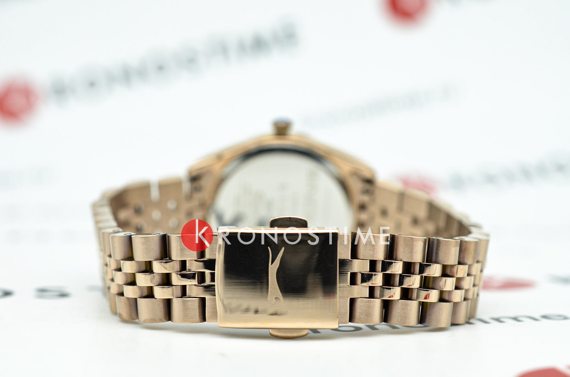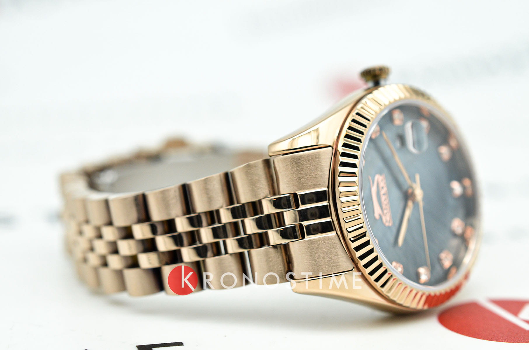 Эти женские часы Slazenger SL.09.2240.3.05 сочетают стильный дизайн и практичность. Корпус, браслет и рифленый безельБезельВнешний ободок, закрепляющий стекло. В спортивных часах так называется поворотное кольцо с делениями на циферблате, выполняет роль таймера – замеряет отрезки времени на шкале. Неподвижный безель – элемент декора. Однонаправленно вращающийся безель на дайверских часах позволяет фиксировать моменты погружения и выныривания на поверхность. выполнены из прочного металла золотистого цвета с IP-покрытиемIP-покрытиеМетод ионного напыления. Демонстрирует повышенную устойчивость к истиранию, окислению и химическим веществам. Под воздействием высокого давления и температуры около 1500°C молекулы металла надёжно соединяются с частицами корпуса часов., что придает аксессуару элегантный и современный вид. Черный перламутровый циферблат украшен кристаллами, что добавляет часам изысканности и утонченности, также он дополнен функцией календаря, отображающей число месяца. Модель оснащена кварцевым механизмом, который обеспечивает точность хода, а также функцией отображения даты с увеличительным стеклом для удобства просмотра. Минеральное стеклоМинеральное стеклоМинеральное стекло представляет собой искусственно выращенный минерал кварца. Такое стекло отличается особой устойчивостью к повреждениям и царапинам. Уступает по некоторым качествам сапфировому стеклу. защищает циферблат от царапин, водозащита уровня WR 30 позволяет выдерживать случайные брызги воды. Удобная раскладная застёжкаРаскладная застёжкаТакой тип застёжки используется только на браслетах из металла. Она никогда не раскрывается полностью, происходит разделение на 2 и более частей. Раскладывающая застёжка снизит вероятность потери часов к минимуму. обеспечивает надежную фиксацию на запястье. Диаметр корпуса составляет 32 мм, ширина браслета — 16 мм, толщина корпуса — 9 мм, вес часов — 80 граммов. В комплект входит фирменная упаковка, инструкция на русском языке и гарантийный талон. Гарантия на изделие составляет 1 год.