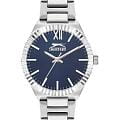 Женские кварцевые часы Slazenger SL.09.2304.3.05 — это элегантный и стильный аксессуар, идеально дополняющий любой образ. Корпус и браслет выполнены из суперметалла, защищён минеральным стекломМинеральное стеклоМинеральное стекло представляет собой искусственно выращенный минерал кварца. Такое стекло отличается особой устойчивостью к повреждениям и царапинам. Уступает по некоторым качествам сапфировому стеклу.. Циферблат синего цвета оформлен в классическом стиле, стрелки оснащены люминесцентным покрытиемЛюминесцентное покрытиеПозволяет считывать показания времени в темноте. Производители наносят на стрелки, часовые индексы, безель или поверхность циферблата светонакопительный состав, дающий холодное свечение., обеспечивающим хорошую читаемость в темноте. Браслет из суперметалла фиксируется на раскладной застёжкеРаскладная застёжкаТакой тип застёжки используется только на браслетах из металла. Она никогда не раскрывается полностью, происходит разделение на 2 и более частей. Раскладывающая застёжка снизит вероятность потери часов к минимуму., обеспечивая надёжность и комфорт ношения. Водонепроницаемость 30 м позволяет использовать часы в повседневных условиях, защищая от случайных брызг и капель дождя. Модель сочетает в себе лёгкость, прочность и изысканный внешний вид.