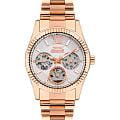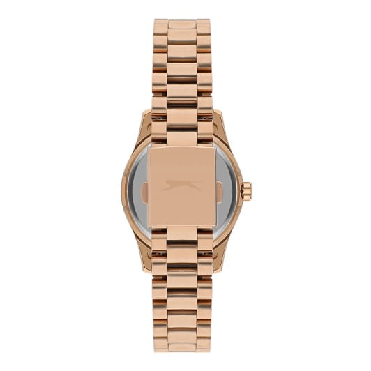Женские кварцевые часы Slazenger SL.09.2317.4.05 - это выразительный и функциональный аксессуар, сочетающий стиль, прочность и насыщенную комплектацию. Корпус и браслет выполнены из суперметалла с  IP-покрытиемIP-покрытиеМетод ионного напыления. Демонстрирует повышенную устойчивость к истиранию, окислению и химическим веществам. Под воздействием высокого давления и температуры около 1500°C молекулы металла надёжно соединяются с частицами корпуса часов.. Циферблат белого цвета защищён минеральным стекломМинеральное стеклоМинеральное стекло представляет собой искусственно выращенный минерал кварца. Такое стекло отличается особой устойчивостью к повреждениям и царапинам. Уступает по некоторым качествам сапфировому стеклу. и оформлен с вынесенными малыми циферблатами для индикации дня недели, даты и времени в 24-часовом формате. Стрелки и метки оснащены люминесцентным покрытиемЛюминесцентное покрытиеПозволяет считывать показания времени в темноте. Производители наносят на стрелки, часовые индексы, безель или поверхность циферблата светонакопительный состав, дающий холодное свечение., обеспечивающим хорошую читаемость в темноте. Браслет золотистого цвета фиксируется на раскладной застёжкеРаскладная застёжкаТакой тип застёжки используется только на браслетах из металла. Она никогда не раскрывается полностью, происходит разделение на 2 и более частей. Раскладывающая застёжка снизит вероятность потери часов к минимуму., обеспечивая удобство и надёжность ношения. Водонепроницаемость 30 м позволяет использовать часы в повседневных условиях, защищая от случайных брызг и капель дождя. Модель подчёркивает индивидуальность владельца и идеально подходит как для повседневного, так и для торжественного образа.