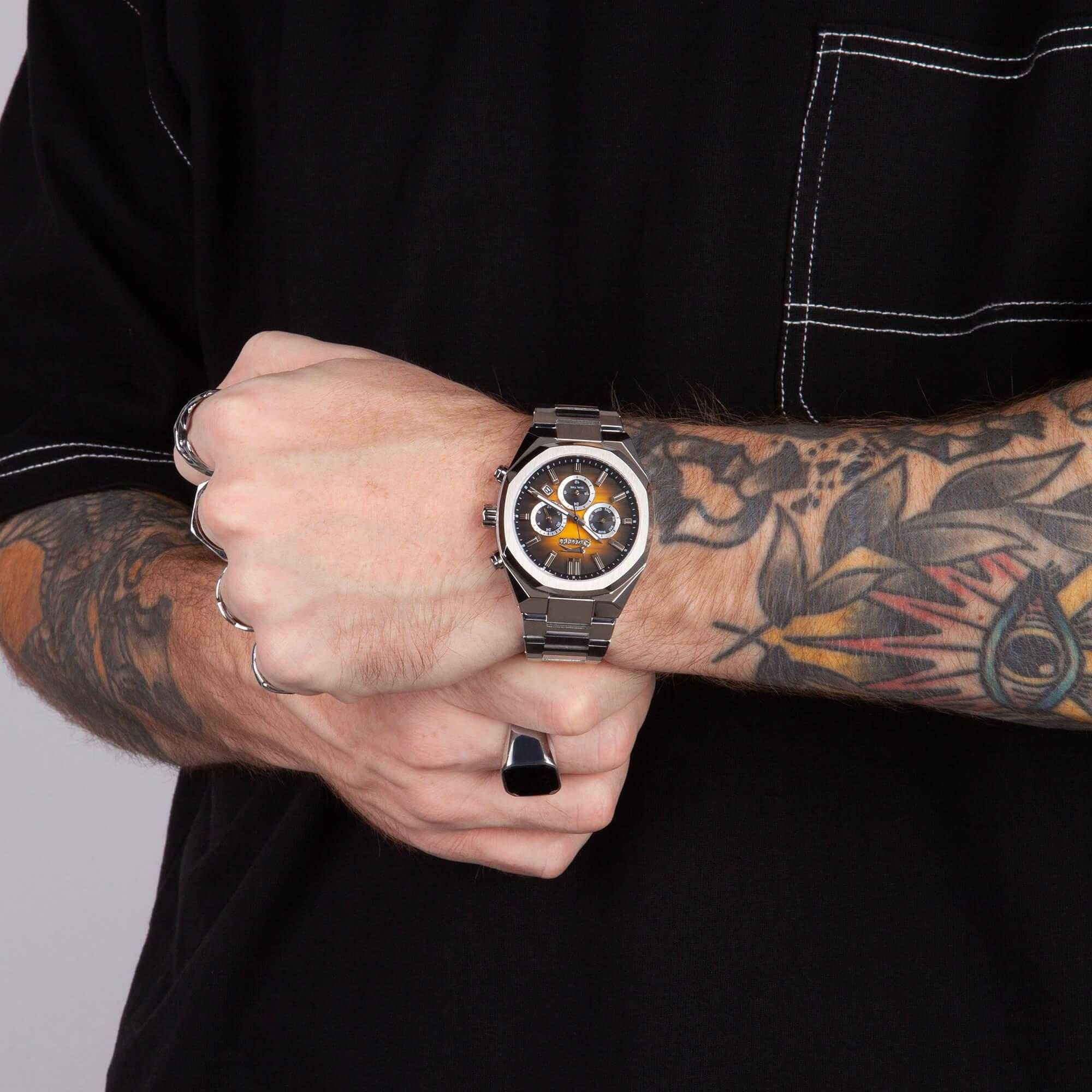 Мужские кварцевые часы Slazenger SL.09.2345.2.03 – идеальное сочетание классического дизайна и современных технологий, созданное для уверенных в себе мужчин. Корпус выполнен из суперметалла серебристого цвета, диаметром 43 мм и толщиной 12 мм, подчёркивает надежность модели и делает их идеальным аксессуаром для любой ситуации – будь то деловая встреча или повседневные выходы. Циферблат надёжно защищён минеральным стекломМинеральное стеклоМинеральное стекло представляет собой искусственно выращенный минерал кварца. Такое стекло отличается особой устойчивостью к повреждениям и царапинам. Уступает по некоторым качествам сапфировому стеклу., которое устойчиво к механическим повреждениям и сохраняет кристальную прозрачность. Браслет из суперметалла удобно облегает запястье и фиксируется с помощью раскладной застёжкиРаскладная застёжкаТакой тип застёжки используется только на браслетах из металла. Она никогда не раскрывается полностью, происходит разделение на 2 и более частей. Раскладывающая застёжка снизит вероятность потери часов к минимуму., обеспечивая надёжность и комфорт в повседневном ношении. Стрелки и метки покрыты люминесцентным покрытиемЛюминесцентное покрытиеПозволяет считывать показания времени в темноте. Производители наносят на стрелки, часовые индексы, безель или поверхность циферблата светонакопительный состав, дающий холодное свечение., обеспечивающим отличную читаемость в темноте. Эти часы станут не просто аксессуаром, а надежным спутником в любой ситуации, подчеркивая ваш безупречный вкус и деловой стиль. Окошко даты находится в положении между 4 и 5 часов. Вынесенный циферблат с 24-х часовым указателем времени. Водозащита до 50 метров позволит защитить корпус от случайных брызг или капель дождя. Функция GMTGMTОтображение времени второго часового пояса.Такая функция особенно актуальна для путешественников и бизнесменов,которые общаются с людьми из разных стран,теперь вы всегда будете знать,какой час у вашего партнёра или близкого человека. поможет отслеживать время второго часового поясаВторой часовой поясФункция, позволяющая отображать время двух часовых поясов одновременно..
