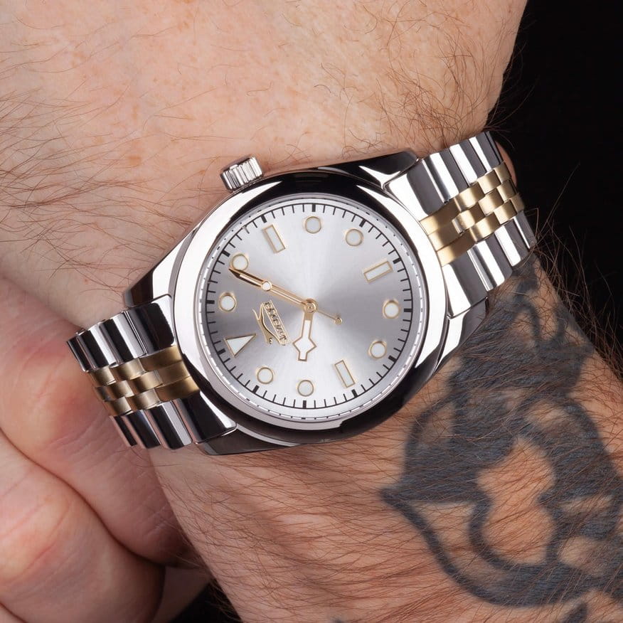 Мужские кварцевые часы Slazenger SL.09.2354.1.04 – идеальное сочетание классического дизайна и современных технологий, созданное для уверенных в себе мужчин. Корпус выполнен из суперметалла серебристого цвета, диаметром 41 мм и толщиной 12 мм, подчёркивает надежность модели и делает их идеальным аксессуаром для любой ситуации – будь то деловая встреча или повседневные выходы. Циферблат надёжно защищён минеральным стекломМинеральное стеклоМинеральное стекло представляет собой искусственно выращенный минерал кварца. Такое стекло отличается особой устойчивостью к повреждениям и царапинам. Уступает по некоторым качествам сапфировому стеклу., которое устойчиво к механическим повреждениям и сохраняет кристальную прозрачность. Браслет из суперметалла с частичным IP-покрытиемIP-покрытиеМетод ионного напыления. Демонстрирует повышенную устойчивость к истиранию, окислению и химическим веществам. Под воздействием высокого давления и температуры около 1500°C молекулы металла надёжно соединяются с частицами корпуса часов. удобно облегает запястье и фиксируется с помощью раскладной застёжкиРаскладная застёжкаТакой тип застёжки используется только на браслетах из металла. Она никогда не раскрывается полностью, происходит разделение на 2 и более частей. Раскладывающая застёжка снизит вероятность потери часов к минимуму., обеспечивая надёжность и комфорт в повседневном ношении. Стрелки и метки покрыты люминесцентным покрытиемЛюминесцентное покрытиеПозволяет считывать показания времени в темноте. Производители наносят на стрелки, часовые индексы, безель или поверхность циферблата светонакопительный состав, дающий холодное свечение., обеспечивающим отличную читаемость в темноте. Эти часы станут не просто аксессуаром, а надежным спутником в любой ситуации, подчеркивая ваш безупречный вкус и деловой стиль. Водозащита до 50 метров позволит защитить корпус от случайных брызг или капель дождя.