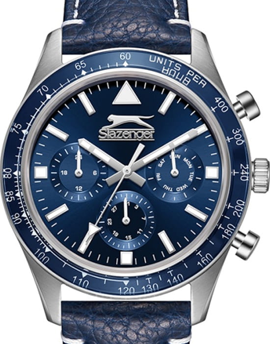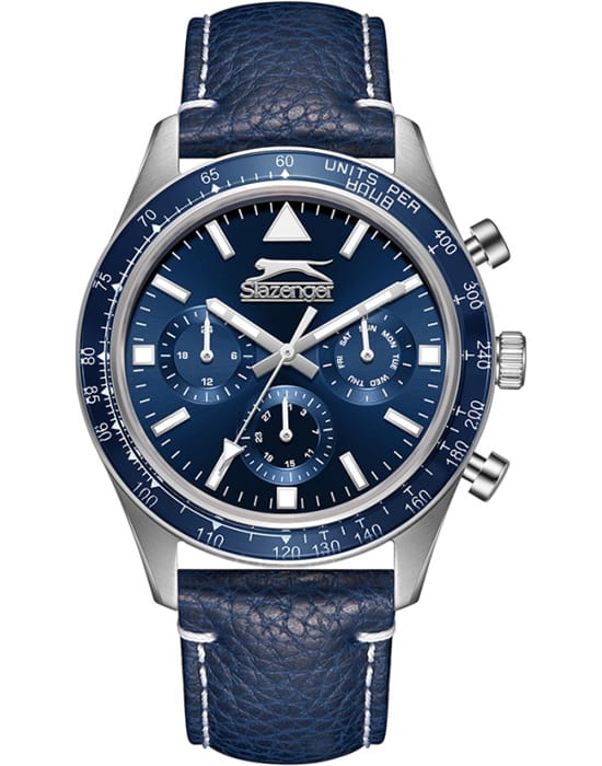 Slazenger SL.09.2361.2.03 — стильные мужские часы, сочетающие современный дизайн и функциональность. Корпус выполнен из нержавеющей стали, а безельБезельВнешний ободок, закрепляющий стекло. В спортивных часах так называется поворотное кольцо с делениями на циферблате, выполняет роль таймера – замеряет отрезки времени на шкале. Неподвижный безель – элемент декора. Однонаправленно вращающийся безель на дайверских часах позволяет фиксировать моменты погружения и выныривания на поверхность. покрыт PVDPVDУльтратонкое покрытие наносится в технике вакуумного напыления, сочетает в себе нитрид титана особой прочности со слоем золота или оксида хрома. Несёт в себе декоративную или защитную функцию.-покрытием синего цвета, придающим модели выразительный и элегантный вид. Минеральное стеклоМинеральное стеклоМинеральное стекло представляет собой искусственно выращенный минерал кварца. Такое стекло отличается особой устойчивостью к повреждениям и царапинам. Уступает по некоторым качествам сапфировому стеклу. защищает циферблат от царапин и гарантирует превосходную читаемость. Синий циферблат с контрастными метками и стрелками обеспечивает отличную читаемость в любых условиях. Кожаный ремешок придаёт модели классический стиль и комфорт при ношении. Функциональность дополняется индикацией даты, дня недели и 24-часовым форматом времени. Водонепроницаемость 50 метров делает модель устойчивой к случайным брызгам, идеально подходя для повседневного использования.
