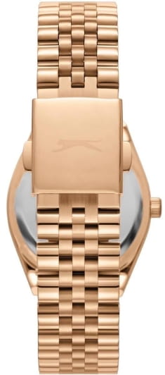 Женские кварцевые часы Slazenger SL.09.2376.3.04 – это сочетание элегантности, современного стиля и надёжности. Изящный корпус из суперметалла с IP-покрытиемIP-покрытиеМетод ионного напыления. Демонстрирует повышенную устойчивость к истиранию, окислению и химическим веществам. Под воздействием высокого давления и температуры около 1500°C молекулы металла надёжно соединяются с частицами корпуса часов. цвета розового золота, диаметром 32 мм и толщиной 9 мм, подчёркивает утончённость модели и делает их идеальным аксессуаром для любой ситуации – будь то деловая встреча, романтический вечер или повседневные выходы. Циферблат надёжно защищён минеральным стекломМинеральное стеклоМинеральное стекло представляет собой искусственно выращенный минерал кварца. Такое стекло отличается особой устойчивостью к повреждениям и царапинам. Уступает по некоторым качествам сапфировому стеклу., которое устойчиво к механическим повреждениям и сохраняет кристальную прозрачность. Браслет из суперметалла с IP-покрытиемIP-покрытиеМетод ионного напыления. Демонстрирует повышенную устойчивость к истиранию, окислению и химическим веществам. Под воздействием высокого давления и температуры около 1500°C молекулы металла надёжно соединяются с частицами корпуса часов. удобно облегает запястье и фиксируется с помощью раскладной застёжкиРаскладная застёжкаТакой тип застёжки используется только на браслетах из металла. Она никогда не раскрывается полностью, происходит разделение на 2 и более частей. Раскладывающая застёжка снизит вероятность потери часов к минимуму., обеспечивая надёжность и комфорт в повседневном ношении. Утончённый стиль, внимание к деталям и практичность делают эту модель идеальным выбором для современных женщин, ценящих эстетику и функциональность. Метки покрыты люминесцентным покрытиемЛюминесцентное покрытиеПозволяет считывать показания времени в темноте. Производители наносят на стрелки, часовые индексы, безель или поверхность циферблата светонакопительный состав, дающий холодное свечение., обеспечивающим отличную читаемость в темноте. Водозащита до 30 метров позволит защитить корпус от случайных брызг или капель дождя.