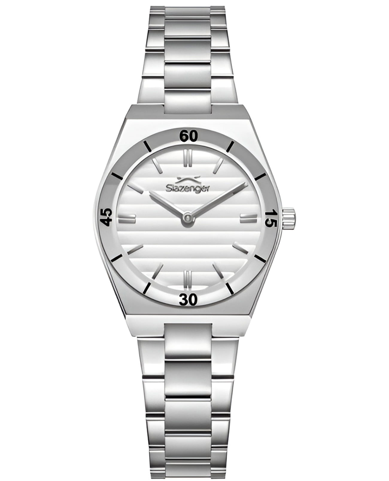 Женские кварцевые часы Slazenger — это элегантный аксессуар. Корпус диаметром 28 мм и толщиной 7,5 мм выполнен из суперметалла. Циферблат серебристого цвета оформлен индексами и стрелками. Циферблат защищён минеральным стекломМинеральное стеклоМинеральное стекло представляет собой искусственно выращенный минерал кварца. Такое стекло отличается особой устойчивостью к повреждениям и царапинам. Уступает по некоторым качествам сапфировому стеклу.. Механизм — кварцевый. Часы оснащены браслетом из суперметалла на раскладной застёжкеРаскладная застёжкаТакой тип застёжки используется только на браслетах из металла. Она никогда не раскрывается полностью, происходит разделение на 2 и более частей. Раскладывающая застёжка снизит вероятность потери часов к минимуму.. Водонепроницаемость 50 м позволяет использовать часы в повседневных условиях. Гарантия — 12 месяцев. Идеальный выбор для тех, кто ценит стиль и качество.