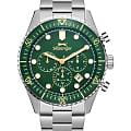Мужские кварцевые часы Slazenger — это выразительный и функциональный аксессуар. Корпус диаметром 43 мм и толщиной 12 мм выполнен из нержавеющей стали 316L. Циферблат зелёного цвета оформлен индексами и стрелками. Циферблат защищён минеральным стекломМинеральное стеклоМинеральное стекло представляет собой искусственно выращенный минерал кварца. Такое стекло отличается особой устойчивостью к повреждениям и царапинам. Уступает по некоторым качествам сапфировому стеклу.. Механизм — кварцевый. Часы оснащены индикацией дня недели, даты, 12/24-часового формата времени и функцией второго часового пояса (GMT)Второй часовой поясФункция, позволяющая отображать время двух часовых поясов одновременно.. Окошко даты расположено между 4 и 5 часами. Стрелки и метки с люминесцентным покрытиемЛюминесцентное покрытиеПозволяет считывать показания времени в темноте. Производители наносят на стрелки, часовые индексы, безель или поверхность циферблата светонакопительный состав, дающий холодное свечение., обеспечивающим хорошую читаемость в темноте. БезельБезельВнешний ободок, закрепляющий стекло. В спортивных часах так называется поворотное кольцо с делениями на циферблате, выполняет роль таймера – замеряет отрезки времени на шкале. Неподвижный безель – элемент декора. Однонаправленно вращающийся безель на дайверских часах позволяет фиксировать моменты погружения и выныривания на поверхность. с IP-покрытиемIP-покрытиеМетод ионного напыления. Демонстрирует повышенную устойчивость к истиранию, окислению и химическим веществам. Под воздействием высокого давления и температуры около 1500°C молекулы металла надёжно соединяются с частицами корпуса часов.. Часы оснащены стальным браслетом с раскладной застёжкойРаскладная застёжкаТакой тип застёжки используется только на браслетах из металла. Она никогда не раскрывается полностью, происходит разделение на 2 и более частей. Раскладывающая застёжка снизит вероятность потери часов к минимуму.. Водонепроницаемость 100 м позволяет использовать часы для плавания и повседневного ношения. Гарантия — 12 месяцев. Идеальный выбор для тех, кто ценит стиль, функциональность и качество.
