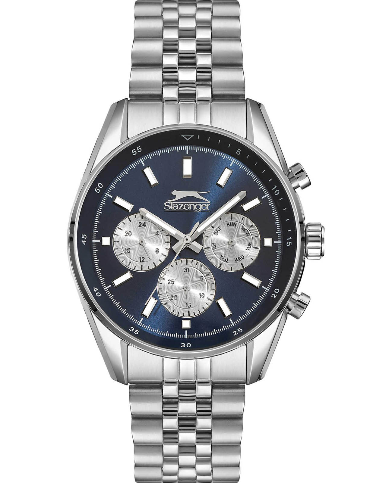 Slazenger SL.09.6507.2.02 — стильные мужские часы, сочетающие элегантный дизайн и функциональность. Корпус выполнен из суперметалла, придающей модели прочность и долговечность. Минеральное стеклоМинеральное стеклоМинеральное стекло представляет собой искусственно выращенный минерал кварца. Такое стекло отличается особой устойчивостью к повреждениям и царапинам. Уступает по некоторым качествам сапфировому стеклу. защищает циферблат от царапин и гарантирует превосходную читаемость. БезельБезельВнешний ободок, закрепляющий стекло. В спортивных часах так называется поворотное кольцо с делениями на циферблате, выполняет роль таймера – замеряет отрезки времени на шкале. Неподвижный безель – элемент декора. Однонаправленно вращающийся безель на дайверских часах позволяет фиксировать моменты погружения и выныривания на поверхность. с PVD-покрытиемPVDУльтратонкое покрытие наносится в технике вакуумного напыления, сочетает в себе нитрид титана особой прочности со слоем золота или оксида хрома. Несёт в себе декоративную или защитную функцию.. Тёмно-синий циферблат с дополнительными индикаторами подчёркивает современный стиль. Браслет из суперметалла обеспечивает комфортное ношение и надёжную фиксацию на запястье. Функциональность дополняется индикацией даты, дня недели и 24-часовым форматом времени, повышая удобство использования. Водонепроницаемость 50 метров делает модель устойчивой к случайным брызгам и влаге, идеально подходя для повседневного ношения.