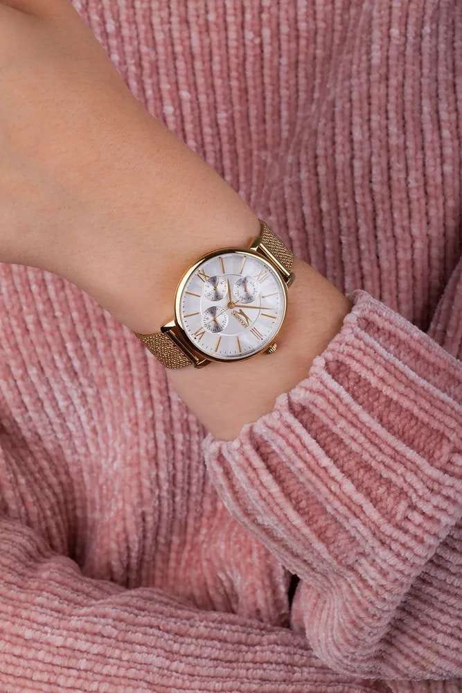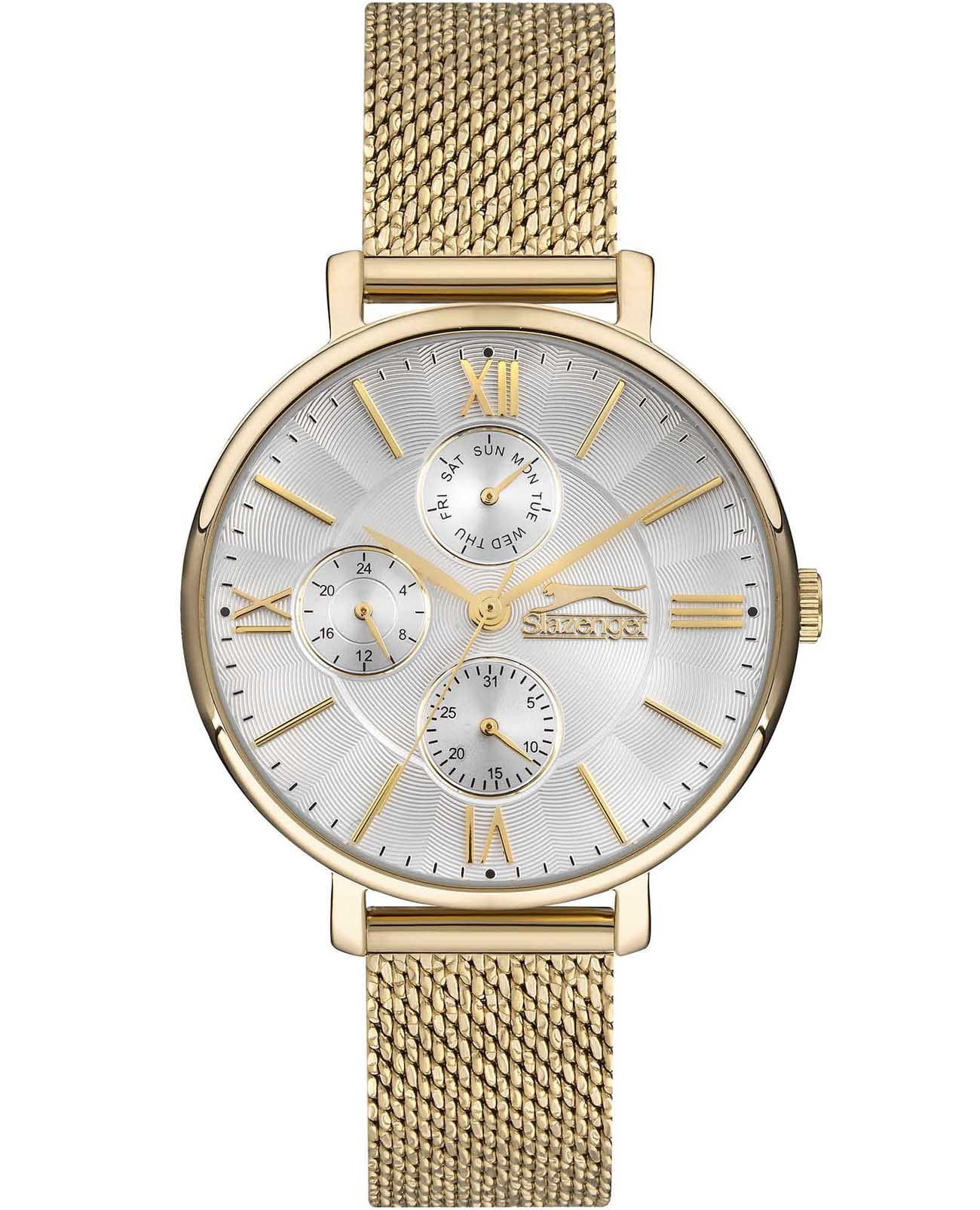 Женские элегантные наручные часы Slazenger SL.09.6543.4.02 сочетают в себе современный стиль и функциональность. Корпус выполнен из суперметалла с IP-покрытиемIP-покрытиеМетод ионного напыления. Демонстрирует повышенную устойчивость к истиранию, окислению и химическим веществам. Под воздействием высокого давления и температуры около 1500°C молекулы металла надёжно соединяются с частицами корпуса часов., придающий модели дополнительную прочность и элегантный внешний вид. Изысканный циферблат защищён минеральным стекломМинеральное стеклоМинеральное стекло представляет собой искусственно выращенный минерал кварца. Такое стекло отличается особой устойчивостью к повреждениям и царапинам. Уступает по некоторым качествам сапфировому стеклу., устойчивым к царапинам и повреждениям. Часы оснащены дополнительными циферблатами, отображающими дату, день недели и 24-часовой формат времени, что добавляет практичности в повседневном использовании. Водонепроницаемость 3 АТМ позволяет использовать часы в повседневных условиях — при мытье рук или под лёгким дождём. Браслет из суперметалла с IP-покрытиемIP-покрытиеМетод ионного напыления. Демонстрирует повышенную устойчивость к истиранию, окислению и химическим веществам. Под воздействием высокого давления и температуры около 1500°C молекулы металла надёжно соединяются с частицами корпуса часов. и с раскладным замкомРаскладной замокДанный вариант застежки используется только на часах с металлическим браслетом. Отличительная особенность такого крепления в том, что длина браслета становится универсальной и вы можете самостоятельно отрегулировать нужный вам размер – застежка просто двигается по браслету часов.  обеспечивает надёжную фиксацию и комфорт при ношении. Эта модель идеально подходит для женщин, ценящих стиль, функциональность и надёжность в одном аксессуаре.