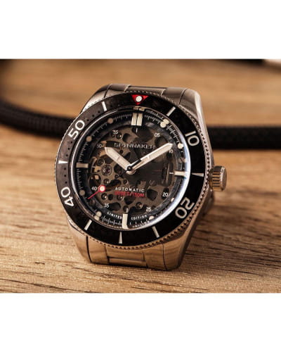 Мужские итальянские часы с автоподзаводом Spinnaker Croft SP-5095-22, механический механизм (автоматический калибр) с высокой точностью. Циферблат с люминесцентным покрытиемЛюминесцентное покрытиеПозволяет считывать показания времени в темноте. Производители наносят на стрелки, часовые индексы, безель или поверхность циферблата светонакопительный состав, дающий холодное свечение. стрелок и меток дополнен сапфировым стекломСапфировое стеклоПрочный и надёжный материал из кристалла сапфира синтетического происхождения, характеризующийся особой твёрдостью и устойчивостью к царапинам и повреждениям., устойчивым к появлению царапин и обладающее высокой прозрачностью. Класс водозащиты: 150 метров, позволит плавать, нырять и заниматься другими водными видами спорта. Корпус часов изготовлен из стали. Стальной браслет на раскладной застёжкеРаскладная застёжкаТакой тип застёжки используется только на браслетах из металла. Она никогда не раскрывается полностью, происходит разделение на 2 и более частей. Раскладывающая застёжка снизит вероятность потери часов к минимуму.. БезельБезельВнешний ободок, закрепляющий стекло. В спортивных часах так называется поворотное кольцо с делениями на циферблате, выполняет роль таймера – замеряет отрезки времени на шкале. Неподвижный безель – элемент декора. Однонаправленно вращающийся безель на дайверских часах позволяет фиксировать моменты погружения и выныривания на поверхность. с PVD-покрытиемPVDУльтратонкое покрытие наносится в технике вакуумного напыления, сочетает в себе нитрид титана особой прочности со слоем золота или оксида хрома. Несёт в себе декоративную или защитную функцию..