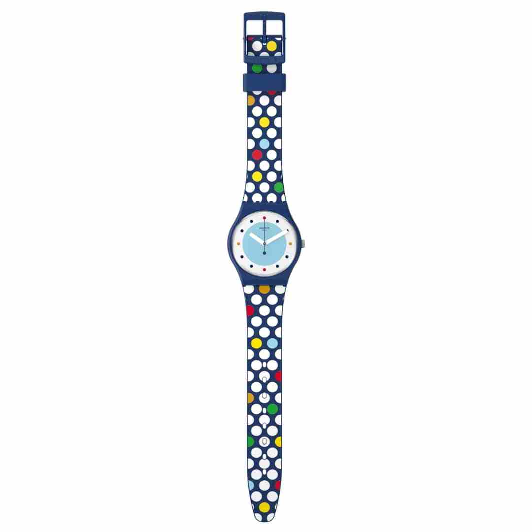 Часы Swatch Gent Biosourced SSO28N115 — это стильный и современный аксессуар, который идеально подходит для повседневного ношения. Они оснащены синим корпусом из биоматериала и силиконовым ремешком в игривый горошек.  Циферблат покрыт органическим стеклом из биоматериала, устойчивым к царапинам и ударам, что гарантирует долговечность изделия.  Внутри часов установлен надежный кварцевый механизм, который обеспечивает точность хода. Эти часы водонепроницаемы до 30 метров, что позволяет не беспокоиться о случайных брызгах или дождевых каплях. Ремешок часов  выполнен из силикона и имеет регулируемую длину, застежка классическая из алюминия. Swatch SO28N115 — это идеальный выбор для тех, кто ценит сочетание стиля, комфорта и функциональности в одном аксессуаре.