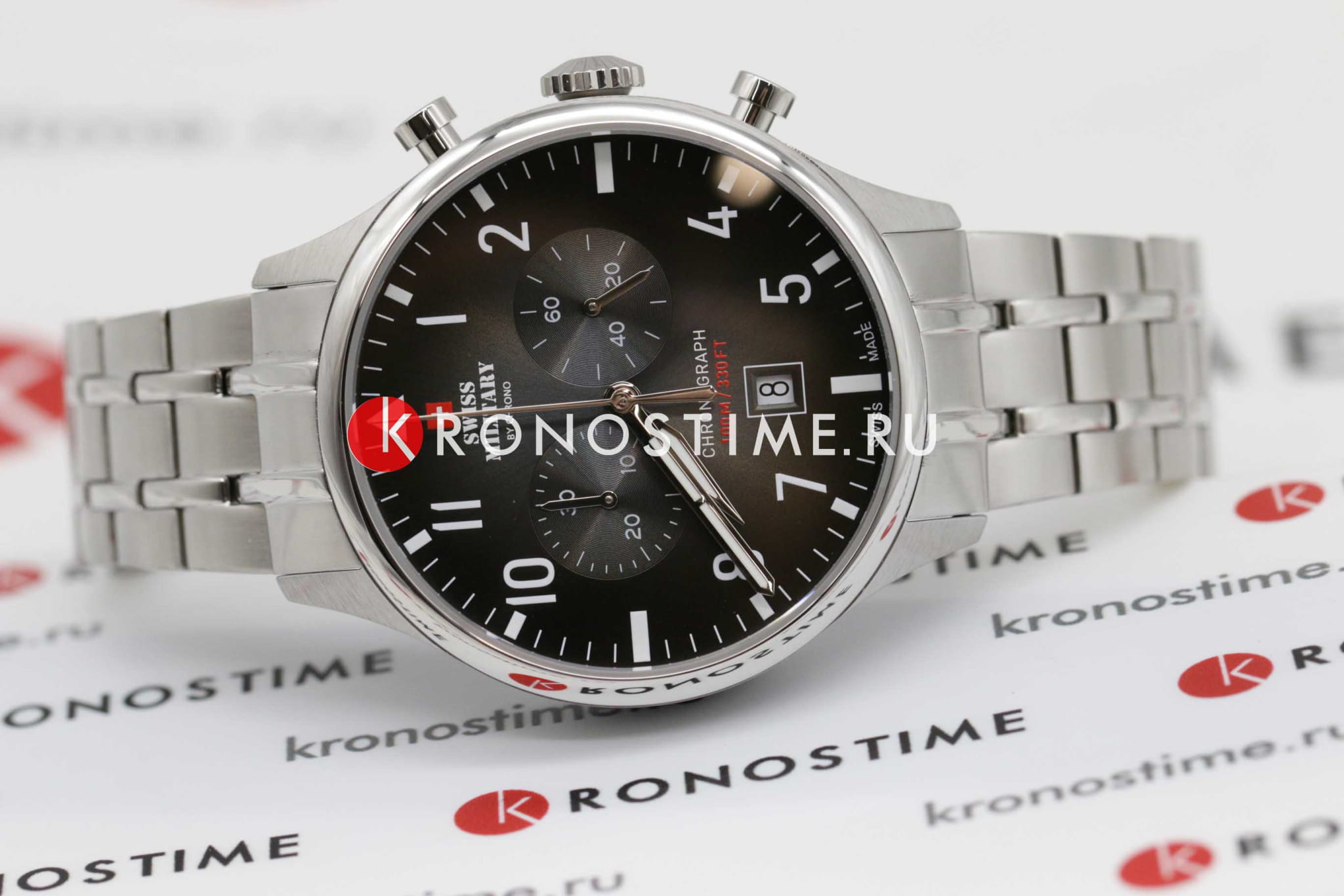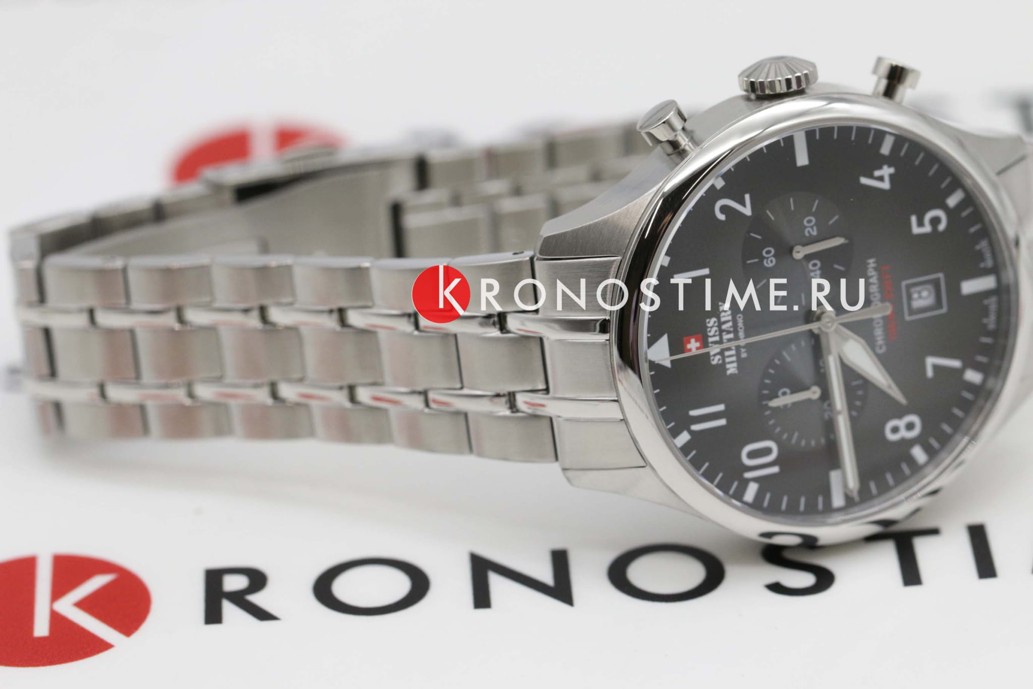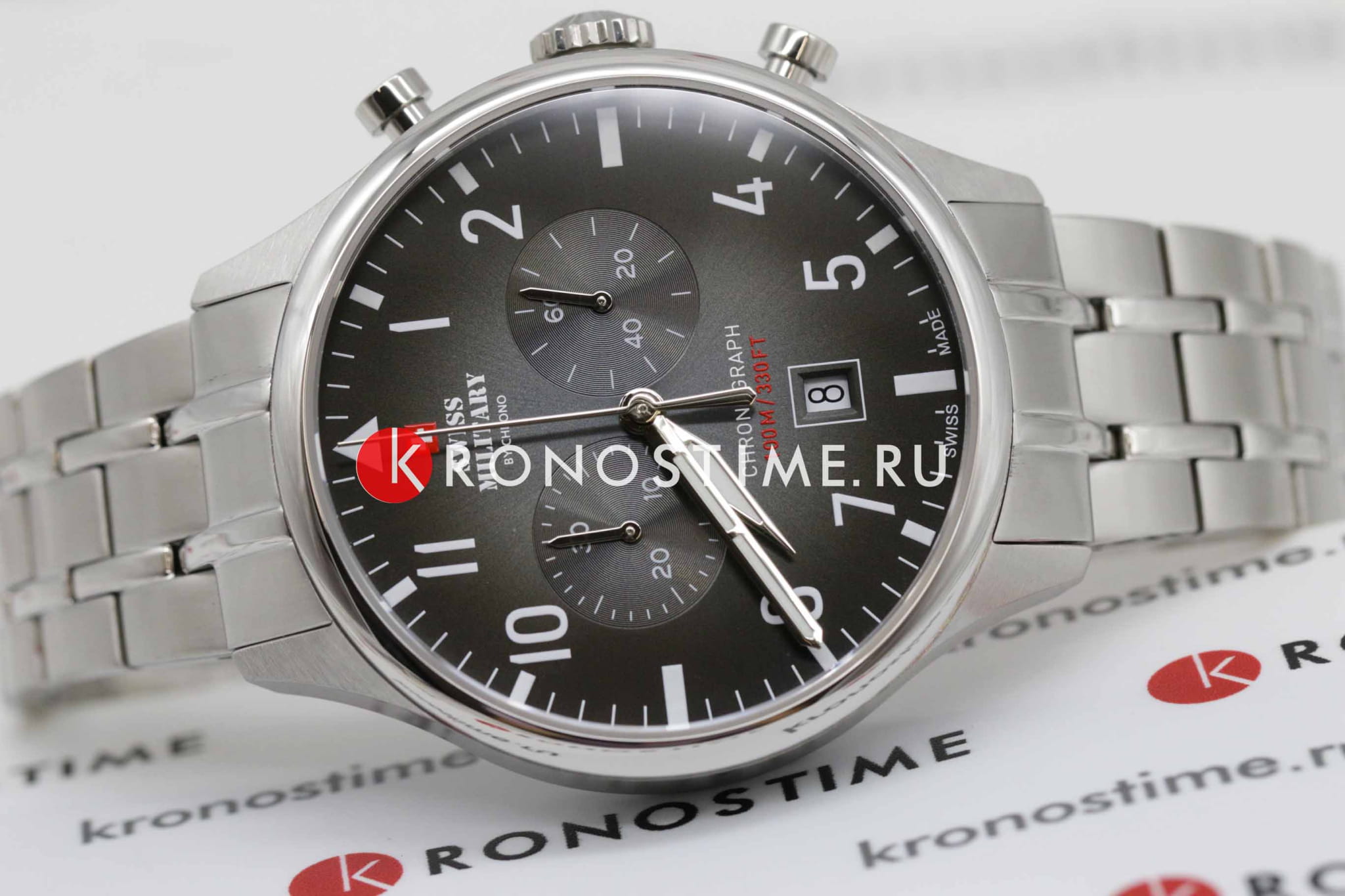 Мужские швейцарские часы хронографХронографФункция позволяет измерять отрезки времени с особой точностью: часы, минуты, секунды. Верным признаком хронографа является наличие на циферблате 3 дополнительных окошек-счётчиков. с секундомеромСекундомерСекундоме́р — прибор, способный измерять интервалы времени с точностью до долей секунды. Swiss Military by Chrono Vintage Chronograph SM34098.01, кварцевый механизм с высокой точностью. Cапфировое стеклоСапфировое стеклоПрочный и надёжный материал из кристалла сапфира синтетического происхождения, характеризующийся особой твёрдостью и устойчивостью к царапинам и повреждениям. устойчивое к появлению царапин и обладающее высокой прозрачностью. Корпус часов изготовлен из нержавеющей стали. На циферблате расположены два дополнительных индикатора и окошко даты. Окошко даты находится в положении 6 часов. Стрелки с люминесцентным покрытиемЛюминесцентное покрытиеПозволяет считывать показания времени в темноте. Производители наносят на стрелки, часовые индексы, безель или поверхность циферблата светонакопительный состав, дающий холодное свечение.. Класс водозащиты: 100 метров, позволит плавать, нырять и заниматься другими водными видами спорта. Стальной браслет на раскладной застёжкеРаскладная застёжкаТакой тип застёжки используется только на браслетах из металла. Она никогда не раскрывается полностью, происходит разделение на 2 и более частей. Раскладывающая застёжка снизит вероятность потери часов к минимуму..