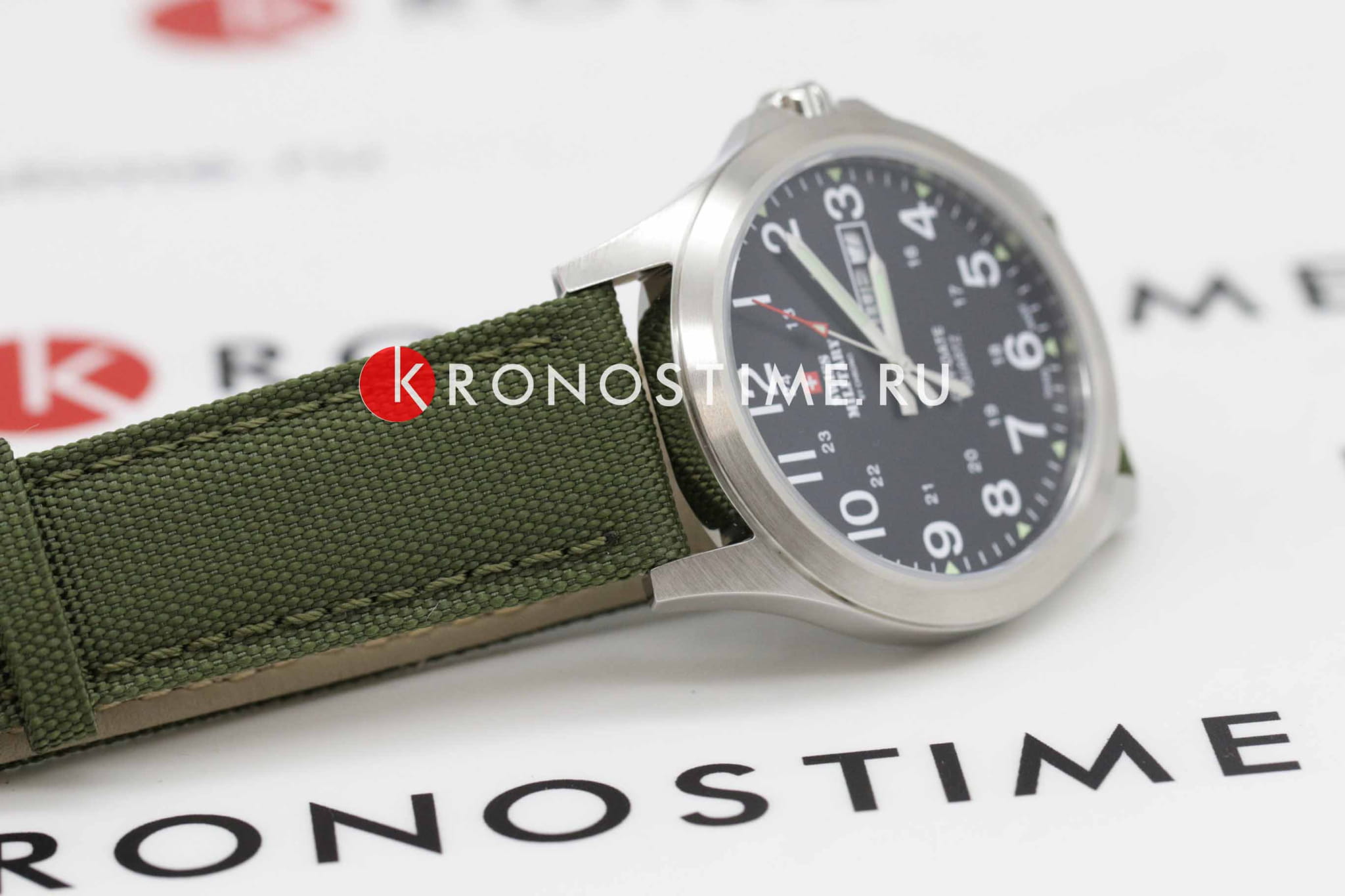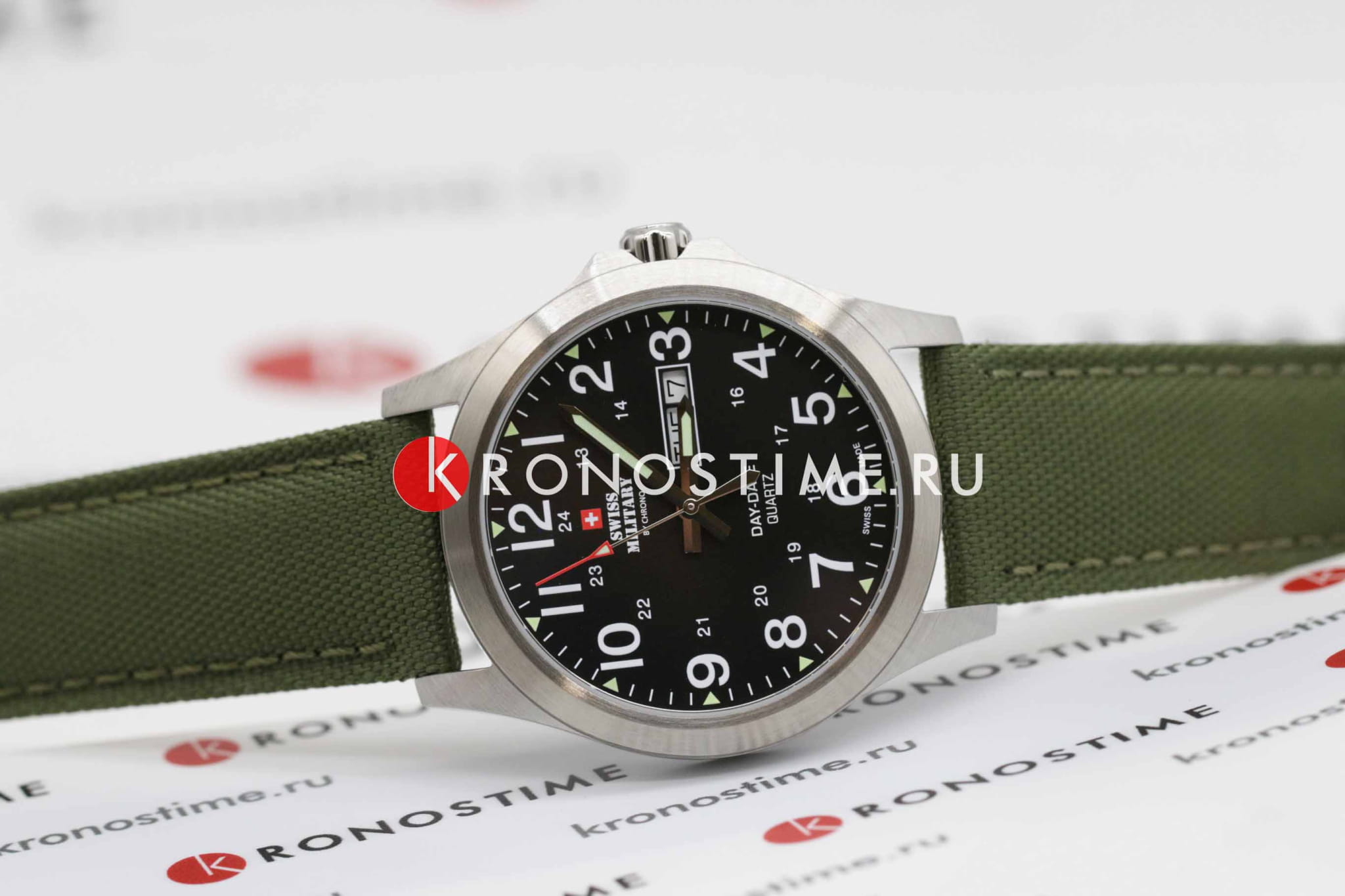 Мужские швейцарские наручные часы с минеральным стекломМинеральное стеклоМинеральное стекло представляет собой искусственно выращенный минерал кварца. Такое стекло отличается особой устойчивостью к повреждениям и царапинам. Уступает по некоторым качествам сапфировому стеклу. Swiss Military by Chrono Day Date SMP36040.05, кварцевый механизм с высокой точностью. Класс водозащиты: 50 метров, позволит защитить корпус от случайных брызг или капель дождя. Корпус часов изготовлен из стали. Стрелки и метки с люминесцентной подсветкойЛюминесцентное покрытиеПозволяет считывать показания времени в темноте. Производители наносят на стрелки, часовые индексы, безель или поверхность циферблата светонакопительный состав, дающий холодное свечение.. Заводная головка с защитой. Текстильный ремешок на стандартной застежке.