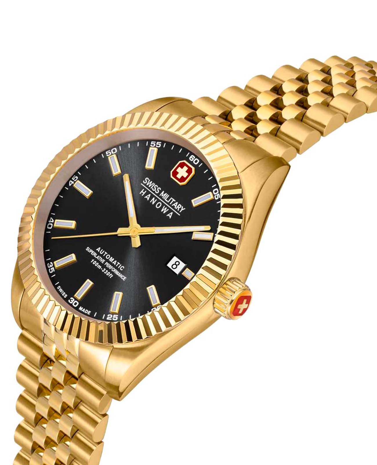 Мужские механические швейцарские часы с автоподзаводом Swiss Military Hanowa Diligenter SMWGL0002110. Сапфировое стеклоСапфировое стеклоПрочный и надёжный материал из кристалла сапфира синтетического происхождения, характеризующийся особой твёрдостью и устойчивостью к царапинам и повреждениям. устойчивое к появлению царапин, обладающее высокой прозрачностью. Корпус из нержавеющей стали с IP-покрытиемIP-покрытиеМетод ионного напыления. Демонстрирует повышенную устойчивость к истиранию, окислению и химическим веществам. Под воздействием высокого давления и температуры около 1500°C молекулы металла надёжно соединяются с частицами корпуса часов.. Стрелки и метки с люминесцентным покрытиемЛюминесцентное покрытиеПозволяет считывать показания времени в темноте. Производители наносят на стрелки, часовые индексы, безель или поверхность циферблата светонакопительный состав, дающий холодное свечение.. Циферблат выполнен по технологии Sunray (солнечные лучи). Окошко даты находится в положении 3 часов. Класс водозащиты: 100 метров, позволит плавать, нырять и заниматься другими водными видами спорта. Стальной браслет с IP-покрытиемIP-покрытиеМетод ионного напыления. Демонстрирует повышенную устойчивость к истиранию, окислению и химическим веществам. Под воздействием высокого давления и температуры около 1500°C молекулы металла надёжно соединяются с частицами корпуса часов. на раскладной застёжкеРаскладная застёжкаТакой тип застёжки используется только на браслетах из металла. Она никогда не раскрывается полностью, происходит разделение на 2 и более частей. Раскладывающая застёжка снизит вероятность потери часов к минимуму..