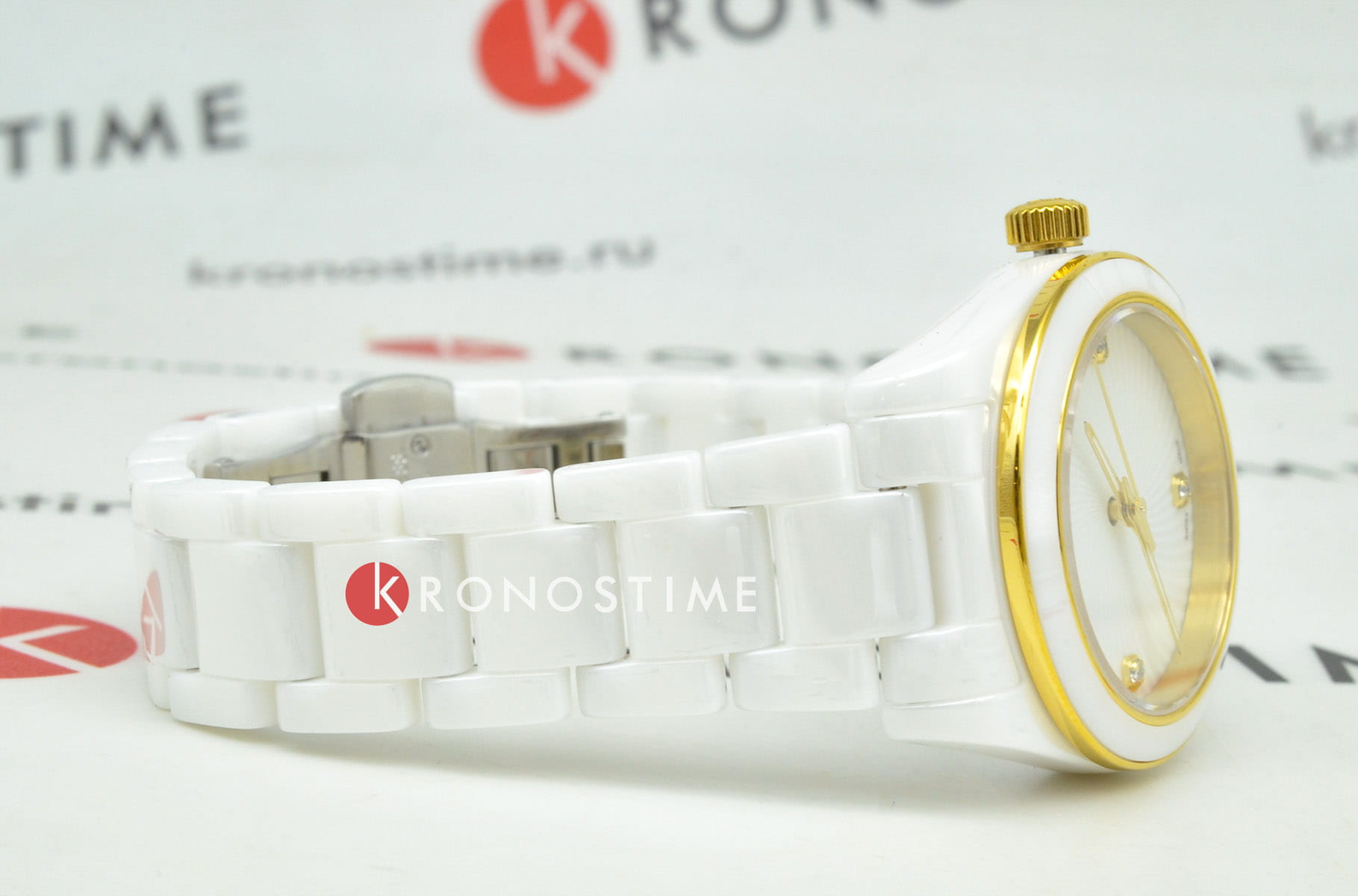 Элегантные женские часы Swiss Military Hanowa SMWLG0005102 олицетворяют изысканный швейцарский стиль и непревзойденное качество. Эти часы идеально подходят для тех, кто ценит классический дизайн в сочетании с современными технологиями. Корпус часов выполнен из керамики с изысканными вставками из стали, покрытыми IPIP-покрытиеМетод ионного напыления. Демонстрирует повышенную устойчивость к истиранию, окислению и химическим веществам. Под воздействием высокого давления и температуры около 1500°C молекулы металла надёжно соединяются с частицами корпуса часов. слоем, что придает аксессуару особый блеск и долговечность. Диаметр корпуса составляет 31,5 мм, что делает их утонченными и изящными. Белый перламутровый циферблат украшен искусственными бриллиантами, которые добавляют нотку роскоши и делают часы настоящим украшением. БезельБезельВнешний ободок, закрепляющий стекло. В спортивных часах так называется поворотное кольцо с делениями на циферблате, выполняет роль таймера – замеряет отрезки времени на шкале. Неподвижный безель – элемент декора. Однонаправленно вращающийся безель на дайверских часах позволяет фиксировать моменты погружения и выныривания на поверхность. с IP-покрытиемIP-покрытиеМетод ионного напыления. Демонстрирует повышенную устойчивость к истиранию, окислению и химическим веществам. Под воздействием высокого давления и температуры около 1500°C молекулы металла надёжно соединяются с частицами корпуса часов. белого и золотистого цвета добавляет завершенности образу.Керамический браслет с застежкой «бабочка»Застёжка "бабочка"Такой вид застёжки дополняется предохранителями, помогающими избежать случайного раскрытия браслета. Обладают изящным исполнением. обеспечивает комфортное ношение и надежную фиксацию на запястье. Кварцевый механизм гарантирует точность хода, а водозащита до 50WR позволяет не беспокоиться о сохранности часов при контакте с водой. Стрелки с люминесцентным покрытиемЛюминесцентное покрытиеПозволяет считывать показания времени в темноте. Производители наносят на стрелки, часовые индексы, безель или поверхность циферблата светонакопительный состав, дающий холодное свечение. обеспечивают удобное считывание времени в темноте после кратковременного пребывания на свету, что делает эти часы практичными в любых условиях. Сапфировое стеклоСапфировое стеклоПрочный и надёжный материал из кристалла сапфира синтетического происхождения, характеризующийся особой твёрдостью и устойчивостью к царапинам и повреждениям. защищает циферблат от царапин, сохраняя его безупречный внешний вид.