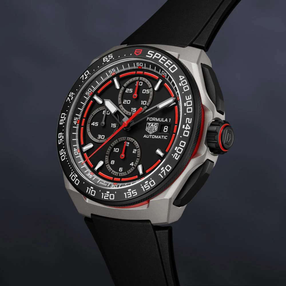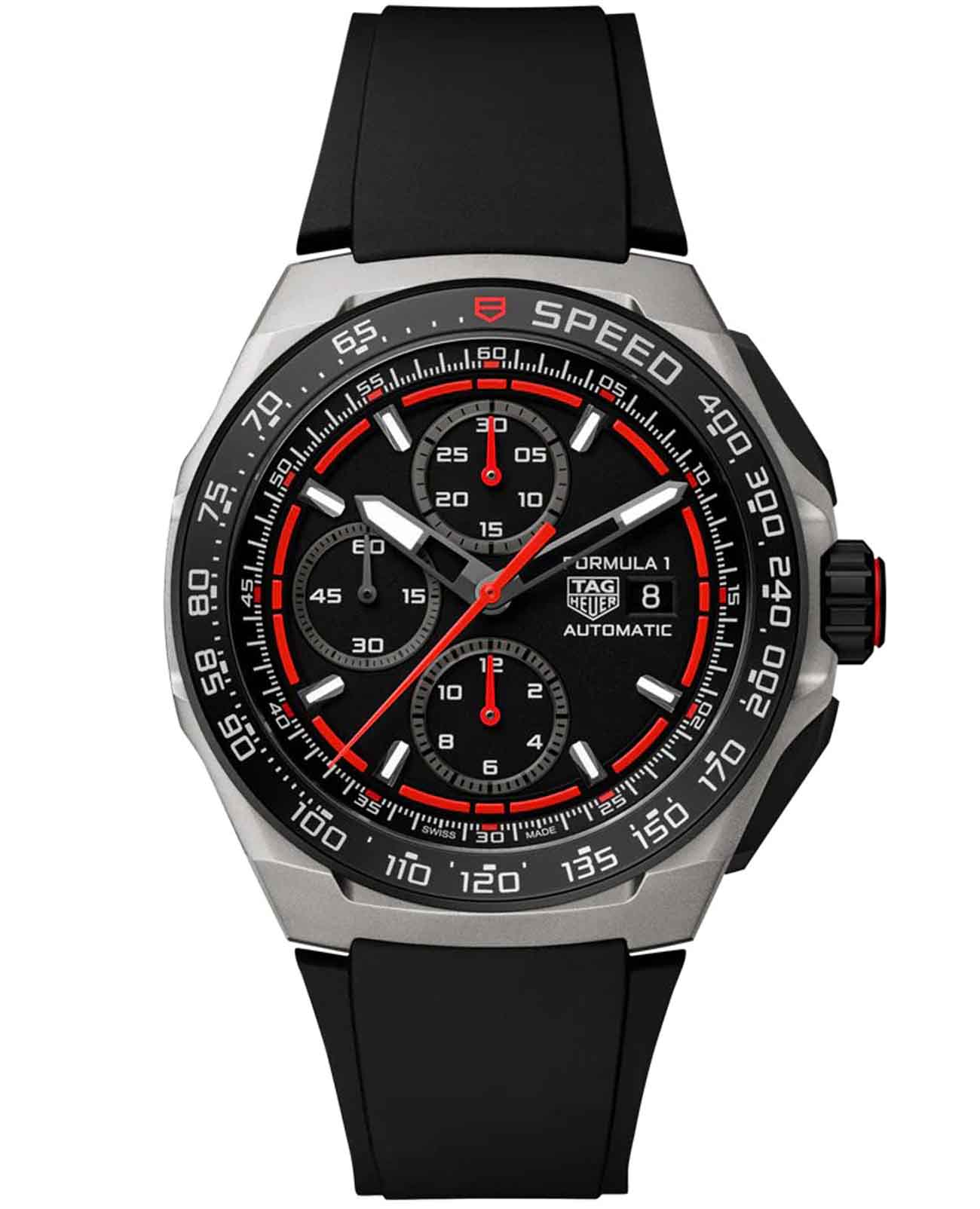 Мужские механические часы TAG Heuer Formula 1 Chronograph CBZ2082.FT8096 — это стильное сочетание элегантности и современного дизайна. Корпус из титана 2-го класса диаметром 44 мм идеально сбалансирован и элегантен. Сапфировое стеклоСапфировое стеклоПрочный и надёжный материал из кристалла сапфира синтетического происхождения, характеризующийся особой твёрдостью и устойчивостью к царапинам и повреждениям. с антибликовым покрытием защищает циферблат от царапин и обеспечивает отличную читаемость при любом освещении. Резиновый ремешок на стандартной застежке идеально дополняют дизайн часов, обеспечивая комфортное ношение. Стрелки и метки на циферблате имеют люминесцентное покрытиеЛюминесцентное покрытиеПозволяет считывать показания времени в темноте. Производители наносят на стрелки, часовые индексы, безель или поверхность циферблата светонакопительный состав, дающий холодное свечение. позволяющее легко определять время даже в темноте. БезельБезельВнешний ободок, закрепляющий стекло. В спортивных часах так называется поворотное кольцо с делениями на циферблате, выполняет роль таймера – замеряет отрезки времени на шкале. Неподвижный безель – элемент декора. Однонаправленно вращающийся безель на дайверских часах позволяет фиксировать моменты погружения и выныривания на поверхность. тахиметраТахиметрРазмеченная шкала, располагается на ободке или безеле часов. Тахиметр позволяет рассчитать скорость на определённом участке пути, расстояние измеряется в километрах или милях. с DLC-покрытиемDLC-покрытиеDiamond like carbon - одно из лучших видов покрытия, представляющее собой углерод с алмазными свойствами. На поверхность материала наносятся распавшиеся молекулы углерода, превращающиеся в плёнку из алмазоподобных связей, которая перенимает твёрдость алмаза. и алюминиевой вставкой подчёркивает спортивное наследие часов. Часы обладают впечатляющей водонепроницаемостью до 20 бар (200 метров), что делает их идеальными для плавания, ныряния и погружений с аквалангом. Автоматический хронографХронографФункция позволяет измерять отрезки времени с особой точностью: часы, минуты, секунды. Верным признаком хронографа является наличие на циферблате 3 дополнительных окошек-счётчиков. обеспечивает точное измерение времени на каждом круге. Прочная конструкция часов и высокопроизводительный механизм делают их идеальным спутником для любителей гонок.
