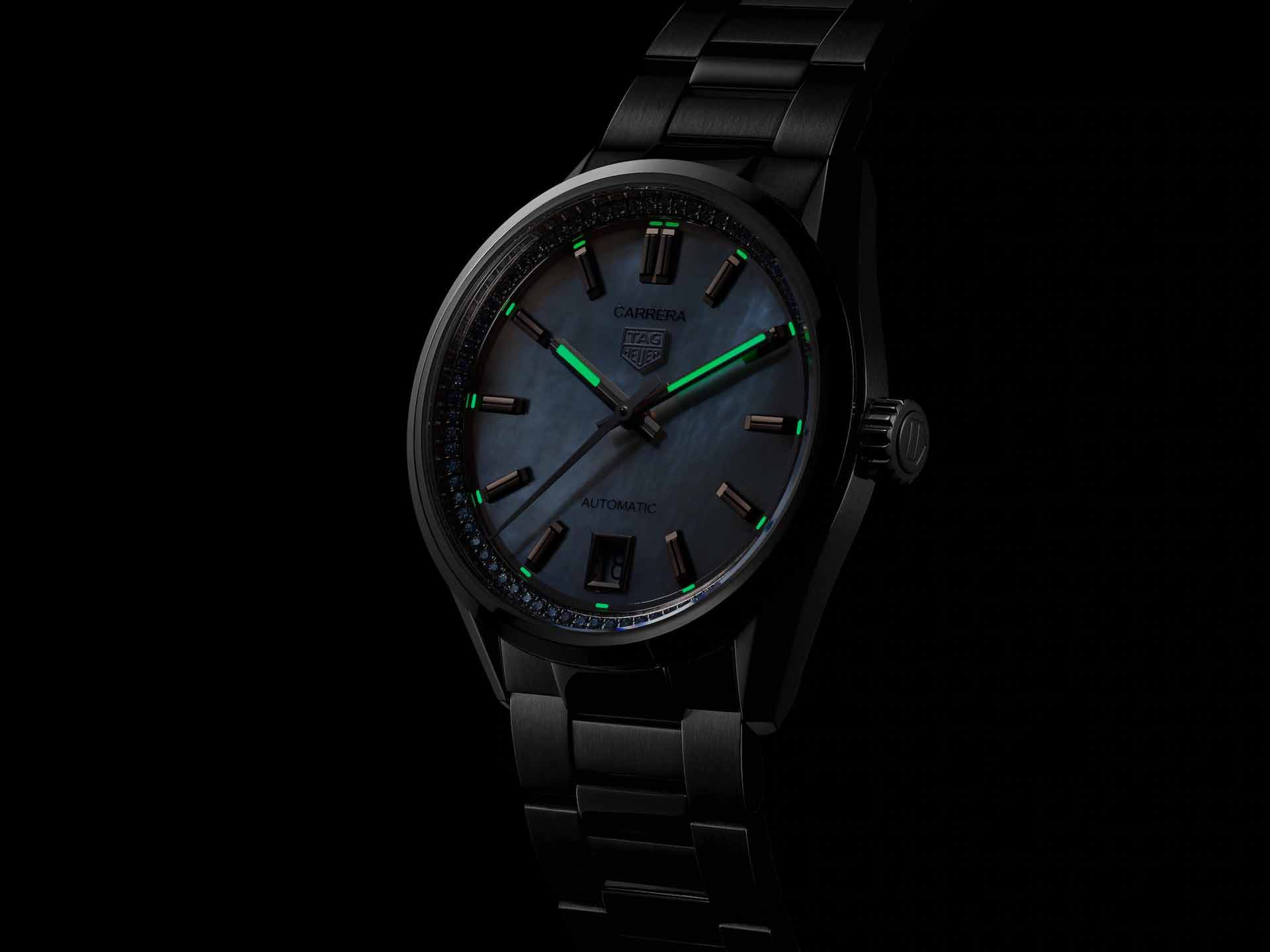 Утончённые часы TAG Heuer Carrera Date WBN231C.BA0001 созданы для стильных и смелых женщин. Механический механизм (автоматический калибр) с высокой точностью производится целиком в стенах компании. Сапфировое стеклоСапфировое стеклоПрочный и надёжный материал из кристалла сапфира синтетического происхождения, характеризующийся особой твёрдостью и устойчивостью к царапинам и повреждениям. устойчивое к появлению царапин, обладающее высокой прозрачностью. На стрелки нанесено люминесцентное покрытиеЛюминесцентное покрытиеПозволяет считывать показания времени в темноте. Производители наносят на стрелки, часовые индексы, безель или поверхность циферблата светонакопительный состав, дающий холодное свечение.. Класс водозащиты: 50 метров, позволит защитить корпус от случайных брызг или капель дождя. Браслет с раскладной застёжкойРаскладная застёжкаТакой тип застёжки используется только на браслетах из металла. Она никогда не раскрывается полностью, происходит разделение на 2 и более частей. Раскладывающая застёжка снизит вероятность потери часов к минимуму.. Апертура даты находится на отметке 6 часов.