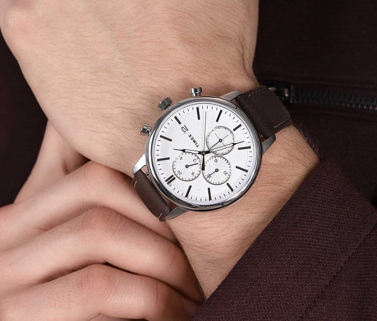 Наручные часы Timex TW2U38800 — стильный и функциональный аксессуар, который станет отличным дополнением к вашему повседневному образу. Эти часы произведены в США и оснащены надежным кварцевым механизмом, что обеспечивает их точность и долговечность. Корпус часов выполнен из нержавеющей стали, придающим изделию элегантный вид и прочности. Серебристый циферблат украшен метками в виде штрихов и дополнен окошком даты для удобного отображения числа. Часы также оснащены секундомеромСекундомерСекундоме́р — прибор, способный измерять интервалы времени с точностью до долей секунды. и функцией хронографаХронографФункция позволяет измерять отрезки времени с особой точностью: часы, минуты, секунды. Верным признаком хронографа является наличие на циферблате 3 дополнительных окошек-счётчиков., что делает их функциональными для повседневного использования. Часы имеют рифленую заводную головку и защищены минеральным стекломМинеральное стеклоМинеральное стекло представляет собой искусственно выращенный минерал кварца. Такое стекло отличается особой устойчивостью к повреждениям и царапинам. Уступает по некоторым качествам сапфировому стеклу., устойчивым к царапинам. Стальная задняя крышка обеспечивает дополнительную защиту механизма. Кожаный ремешок с классической застежкой и системой быстрой замены позволяет легко адаптировать аксессуар под ваш стиль. Водозащита на уровне 50WR защищает часы от воздействия воды, что делает их подходящими для повседневного ношения, включая случайные контакты с водой. Диаметр корпуса составляет 45 мм, а ширина ремешка — 20 мм, что обеспечивает комфортное ношение на запястье.