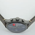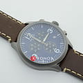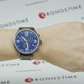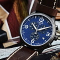 Современный хронограф с элементами спортивного дизайна дополнен коричневым ремешком из натуральной кожи, придавая аксессуару классические нотки. Яркий синий циферблат позволит привнести в образ оттенок новизны и яркости. Корпус с PVD-покрытиемPVDУльтратонкое покрытие наносится в технике вакуумного напыления, сочетает в себе нитрид титана особой прочности со слоем золота или оксида хрома. Несёт в себе декоративную или защитную функцию. надёжно защищает кварцевый механизм ETA G10.212. Водостойкость 100 метров. Сапфировое стекло. Люминесцентная подсветкаЛюминесцентное покрытиеПозволяет считывать показания времени в темноте. Производители наносят на стрелки, часовые индексы, безель или поверхность циферблата светонакопительный состав, дающий холодное свечение. стрелок. Индикация даты, хронографХронографФункция позволяет измерять отрезки времени с особой точностью: часы, минуты, секунды. Верным признаком хронографа является наличие на циферблате 3 дополнительных окошек-счётчиков., секундомер. Габариты: 45 x 45 x 11 мм.