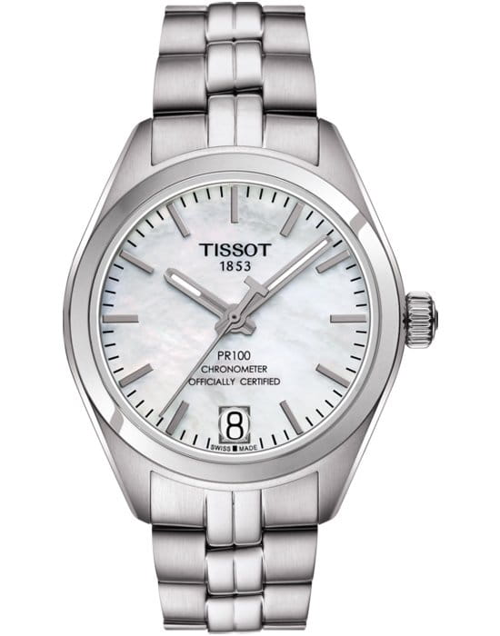 Швейцарские женские механические часы Tissot PR 100 Powermatic 80 Lady COSC T101.208.11.111.00
