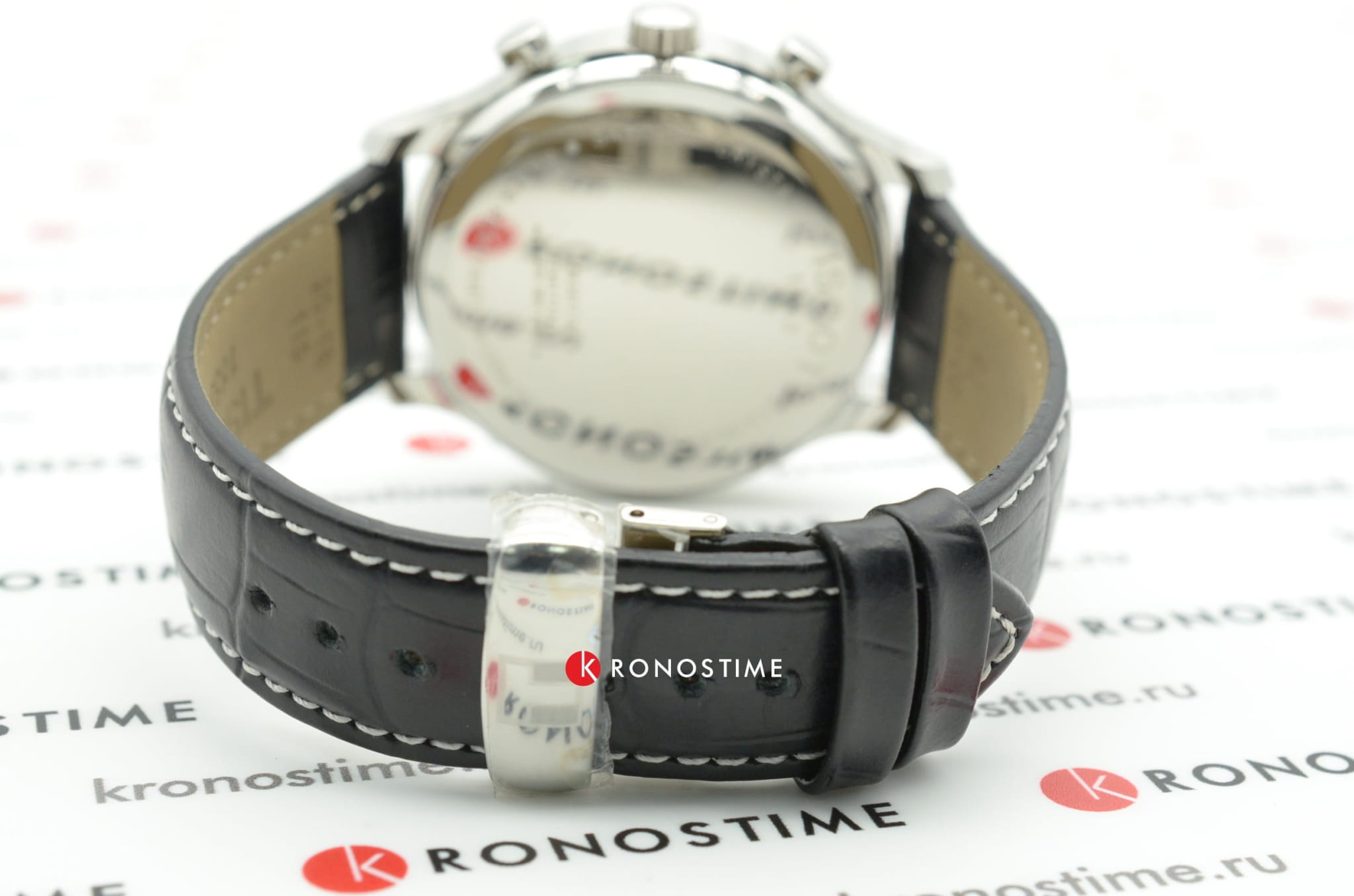 Стильные часы для мужчин оснащены высокоточным хронографом, способным измерять два временных промежутка одновременно. Базовый функционал: секундомер, календарь. Кварцевый калибр ETA G10.211. Минималистичный циферблат. Сапфировое стекло характеризуется повышенной устойчивостью к царапинам. Ремешок из натуральной коровьей кожи с тиснением под крокодила. Габариты: 42 x 42 x 11,1 мм.