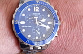 TISSOT T-Sport Seastar 1000 Quartz Chronograph - мужские кварцевые наручные часы Корпус этих часов крупного размера (45 мм) и выполнен из нержавеющей стали L316 металлического цвета Модель имеет устойчивое к царапинам сапфировое стекло, ремешок из натурального каучука черного цвета, черный циферблат Калибр механизма: ETA G10211 Класс водозащиты: 300 м / 30 АТМ (разрешается нырять с аквалангом на глубину) Дополнительные функции и особенности: отображение числа, хронограф (секундомер)